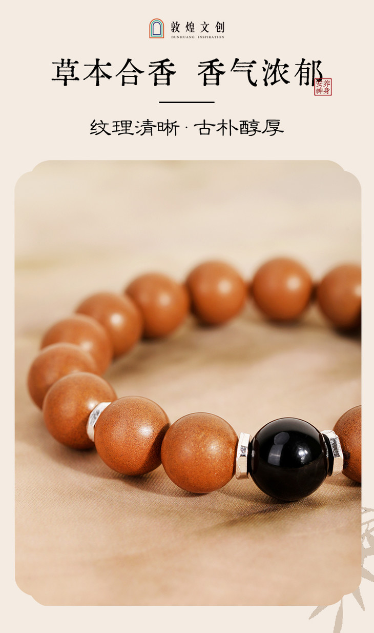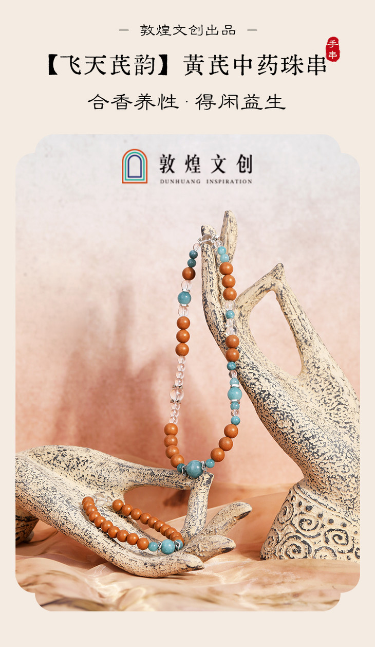 敦煌文创手链 【飞天芪韵】黄芪当归茯苓中药手串 非遗技艺合香首饰(预售5天)