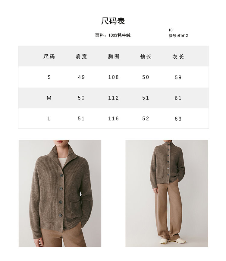 【高品质私服】【IC牦牛绒针织开衫】天然色泽,柔软蓬松,保暖舒适,色彩独特且光泽柔和G1612-CC【无标出货 介意慎拍】