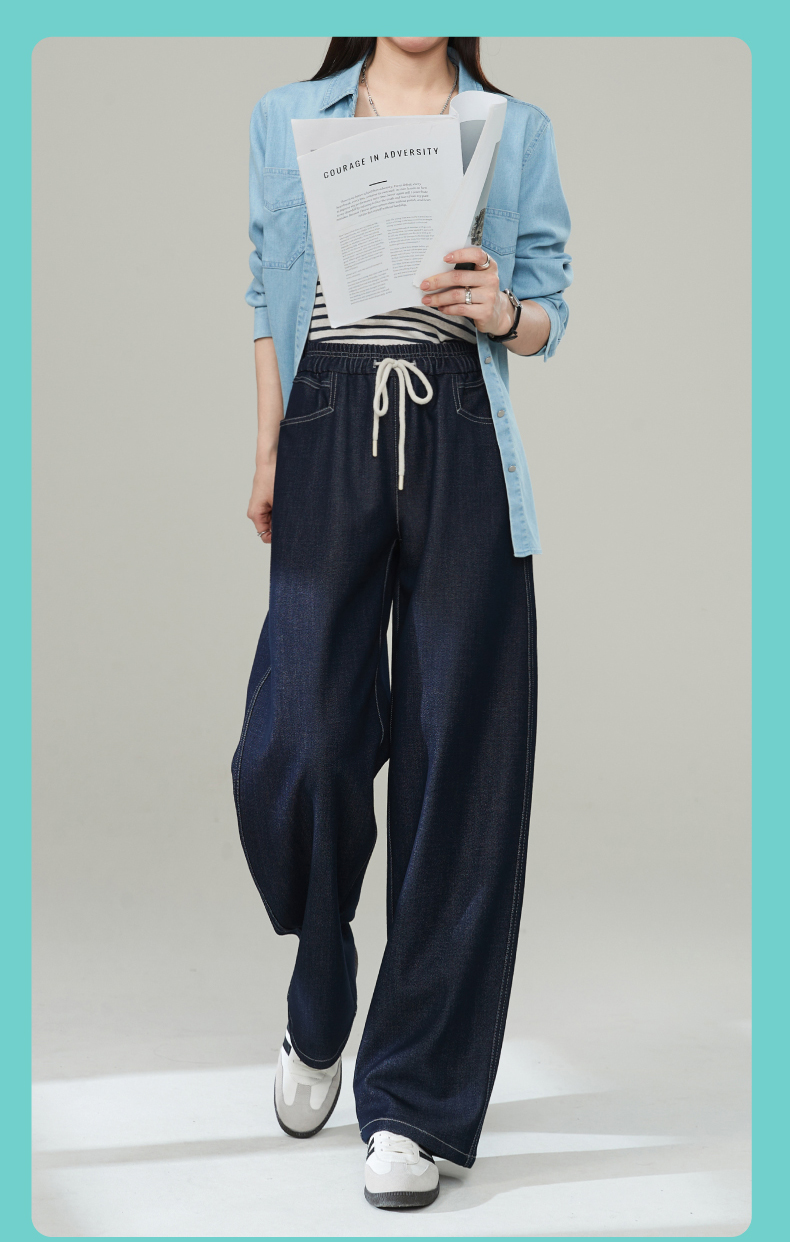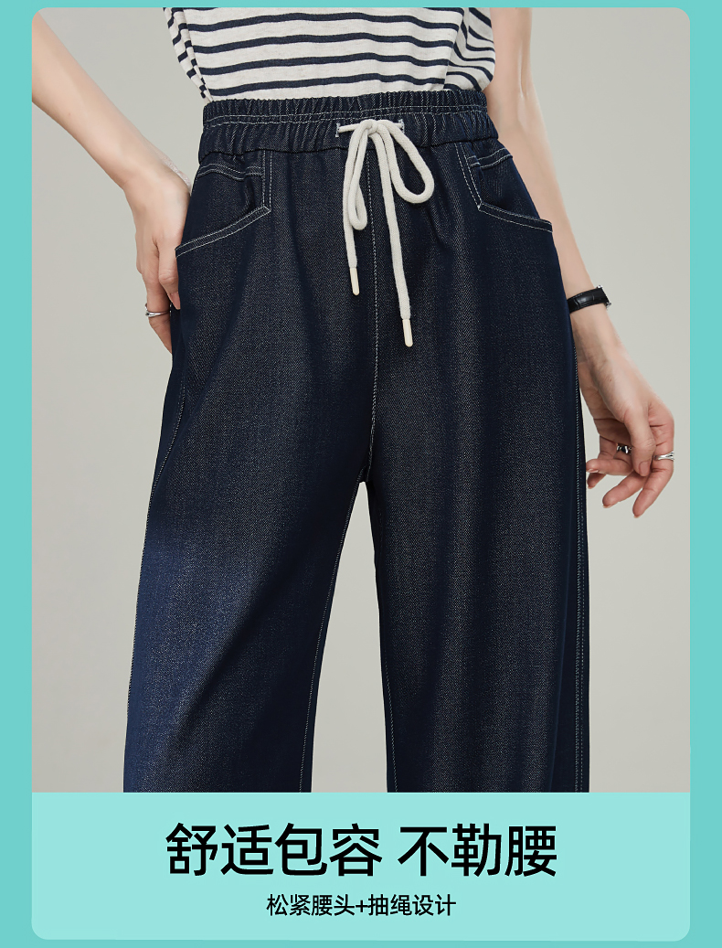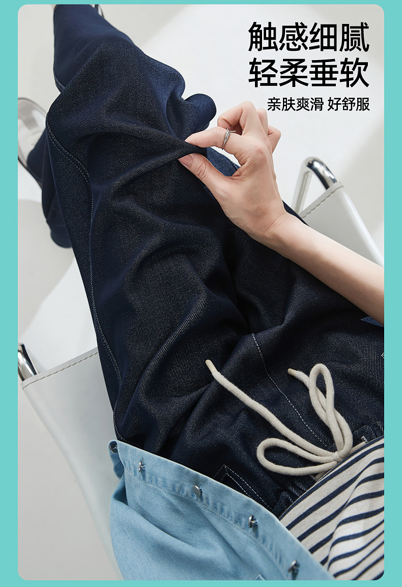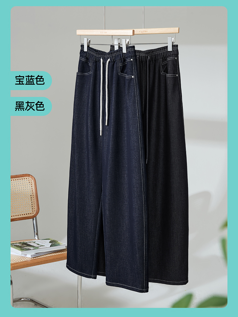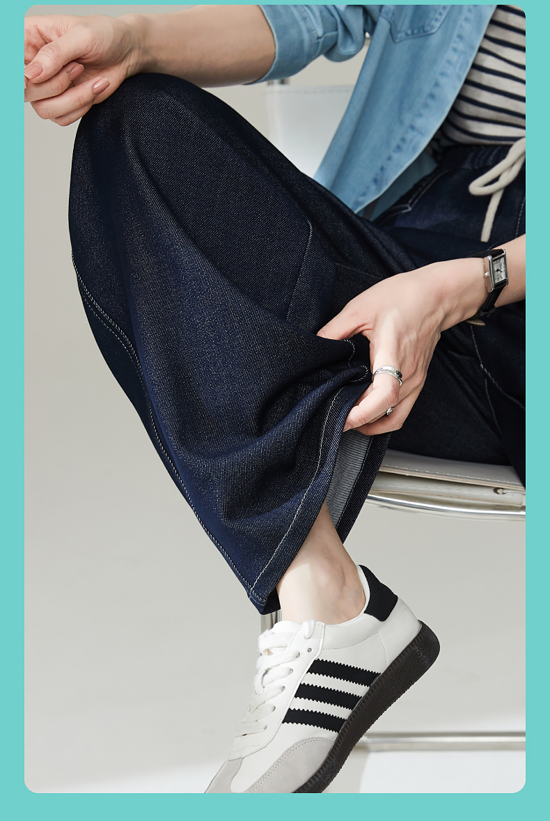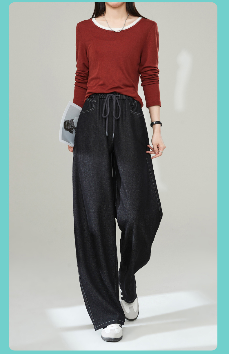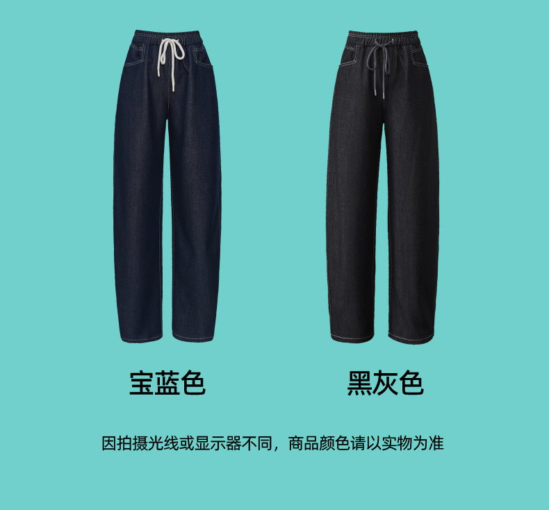 【秋新品-仿牛仔弯刀裤】逸阳丹宁蓝高腰宽松显瘦休闲香蕉长裤1669