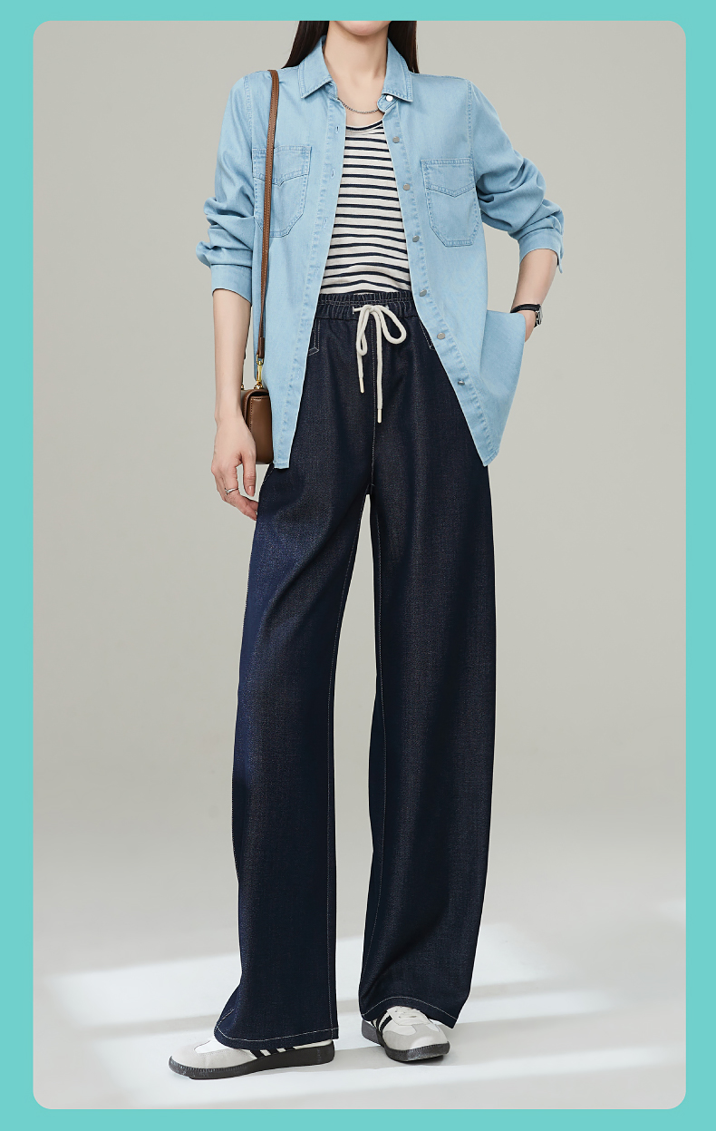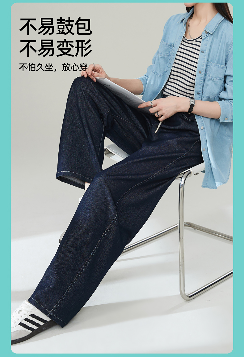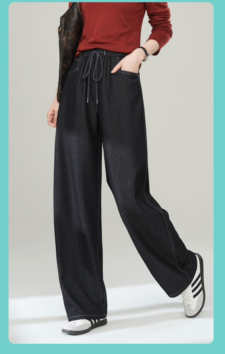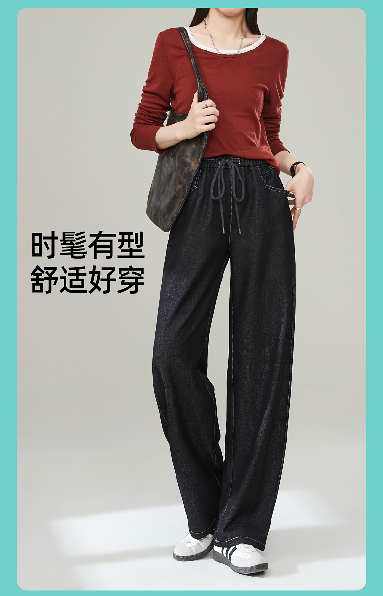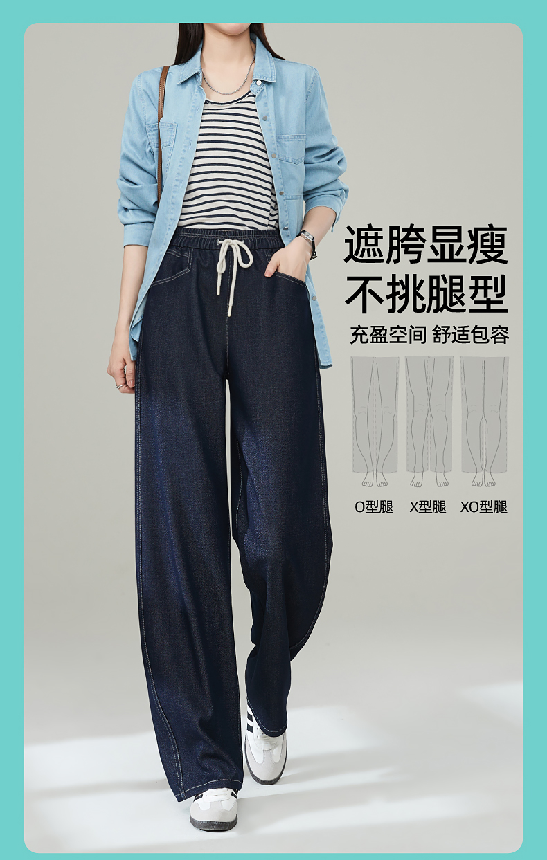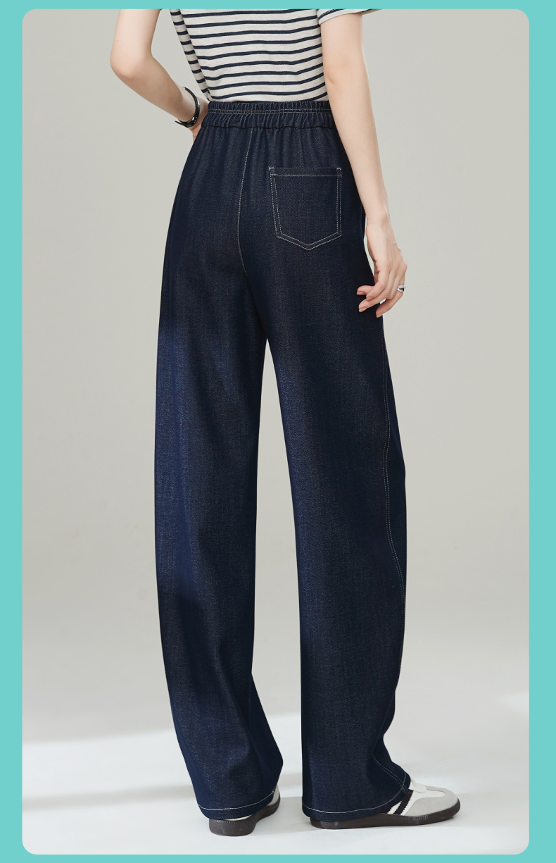 【秋新品-仿牛仔弯刀裤】逸阳丹宁蓝高腰宽松显瘦休闲香蕉长裤1669