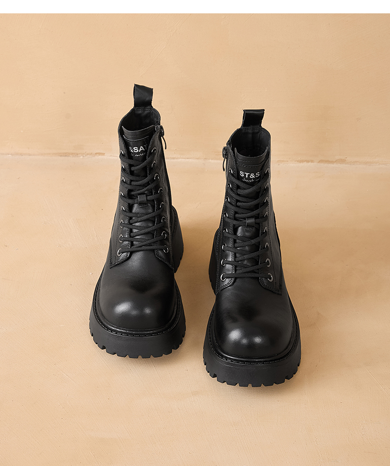 星期六时尚褶皱感厚底马丁靴SSD4116CN4