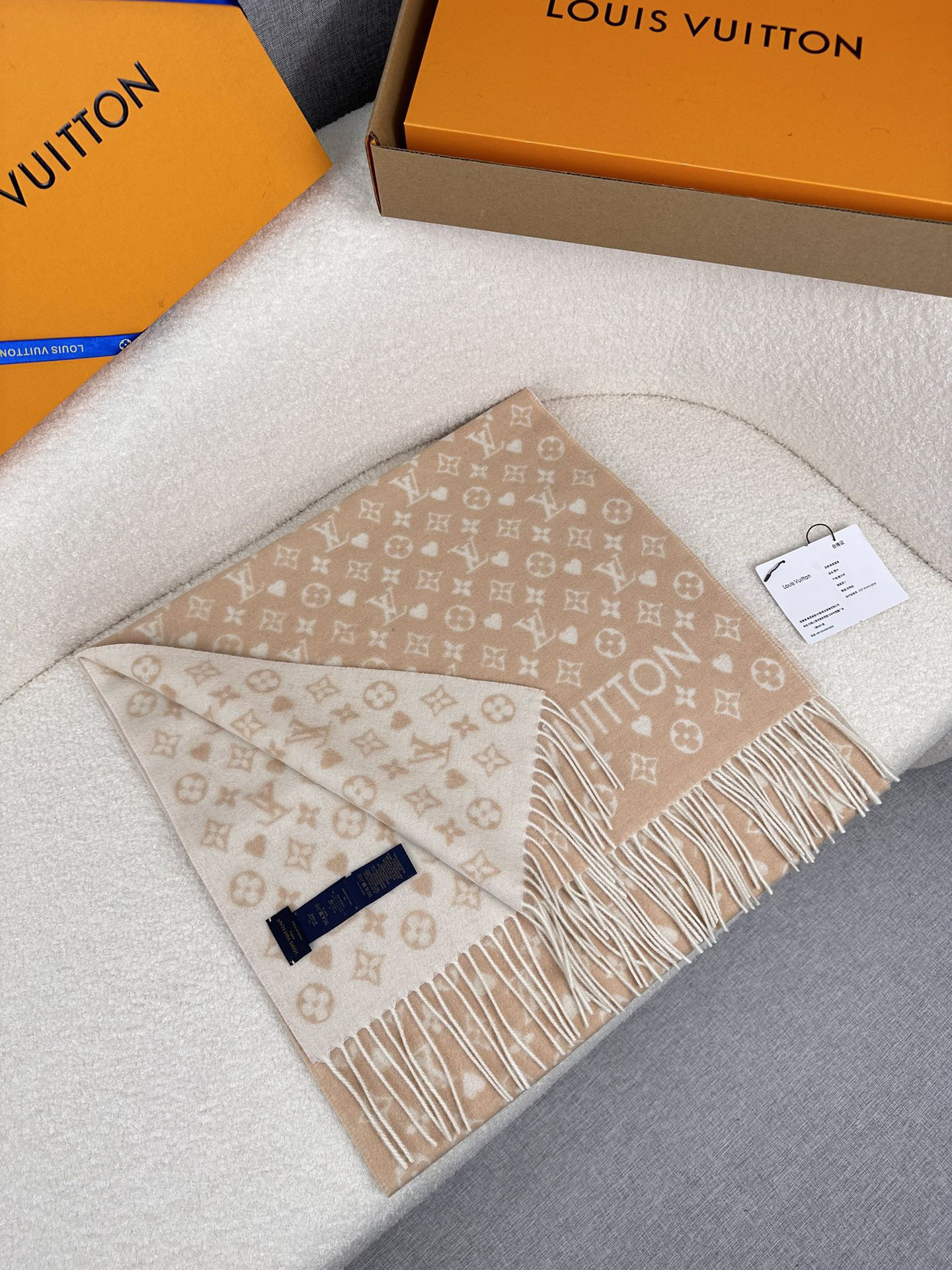 秋冬特惠💰260 LV围巾【L家爱心系列小披肩】温暖如玉的颜色 超级的衬肤色 ,手感极致柔和,品质好得无敌,高密 锁边 斜纹肌理 ,字体清晰 不入手一件都觉得不入流了,超赞的设计,颜值在线 又没有烂大街,值得入手的硬货 规格45*180cm