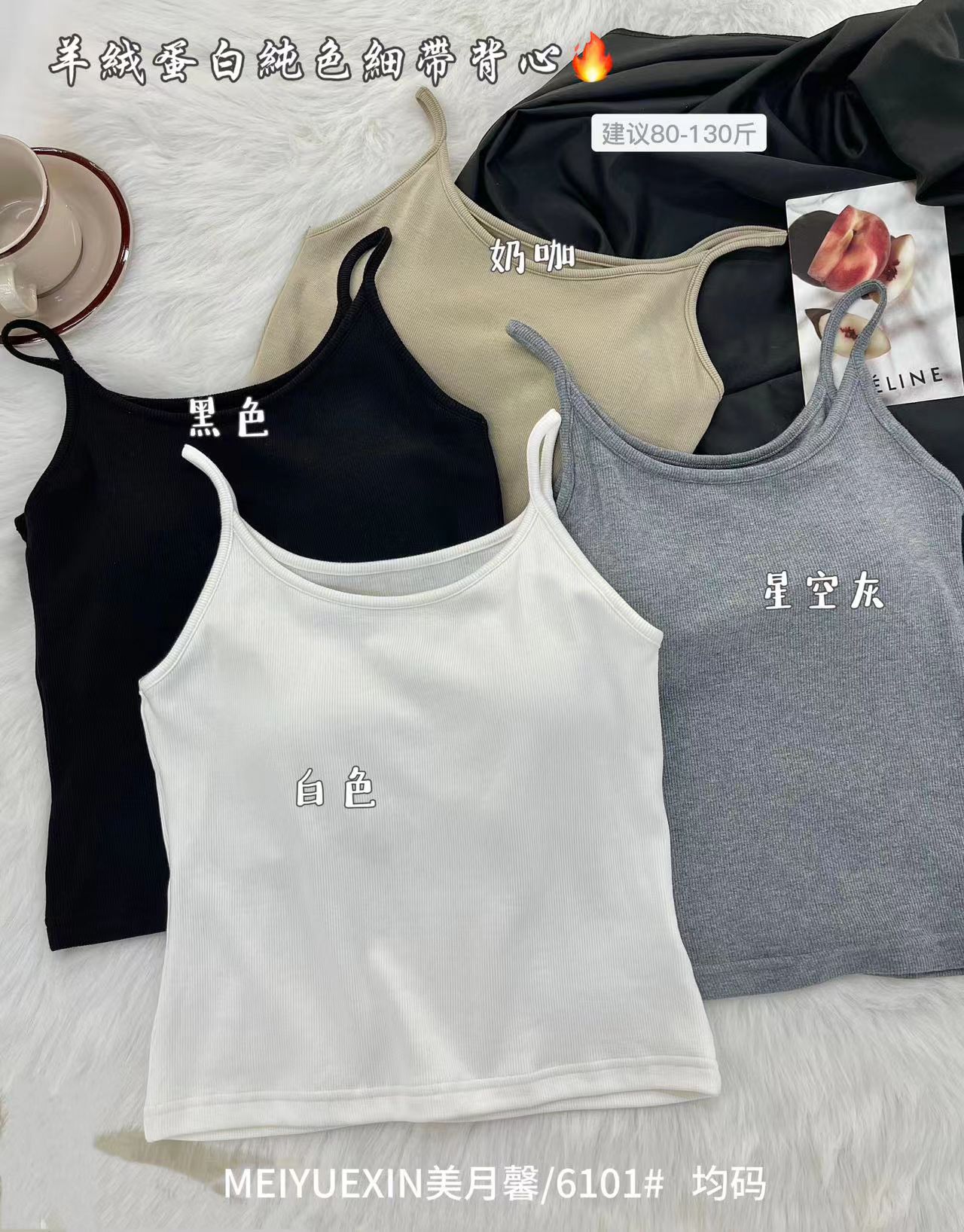 【GZ】无忧购49元2件秋冬羊绒蛋白磨毛固定一体式吊带背心6101(截单后3-5天发货)