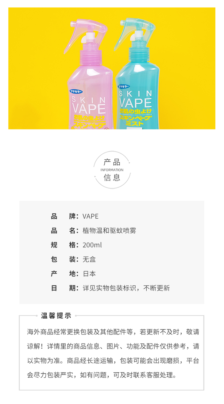 日本未来vape驱蚊水喷雾 婴儿儿童驱蚊喷雾200ml