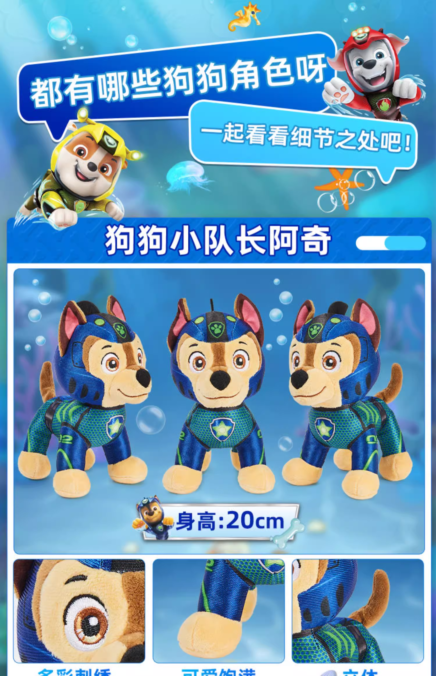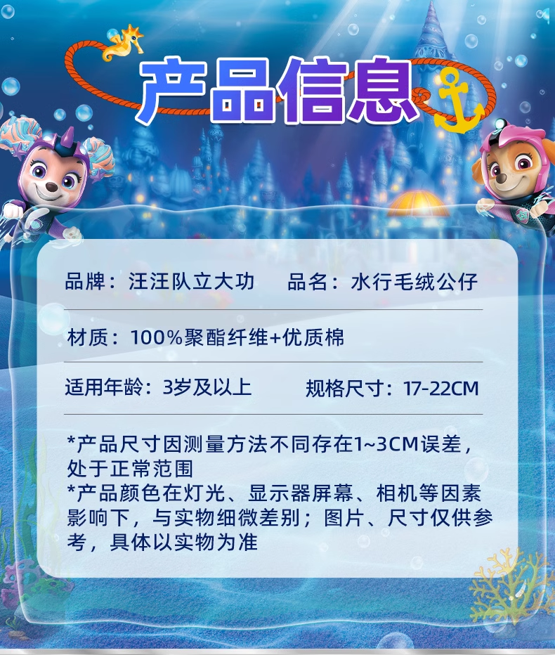 斯平马斯特Spin Master 汪汪队立大功毛绒系列-水行狗狗队