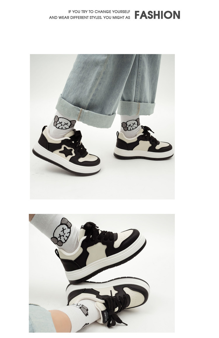 「两款配色!厚底星星鞋」冬季加绒休闲厚底星星板鞋女2023新款韩版潮ins保暖二棉鞋子 商品图4