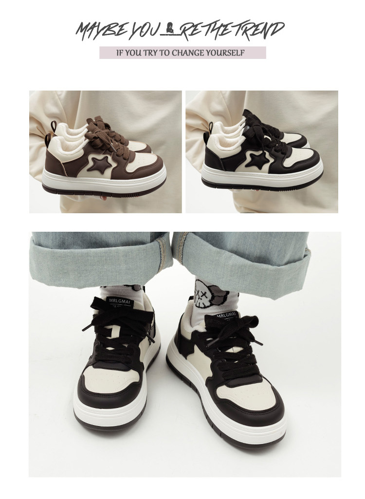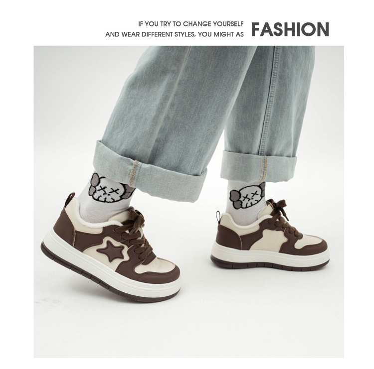 「两款配色!厚底星星鞋」冬季加绒休闲厚底星星板鞋女2023新款韩版潮ins保暖二棉鞋子 商品图2