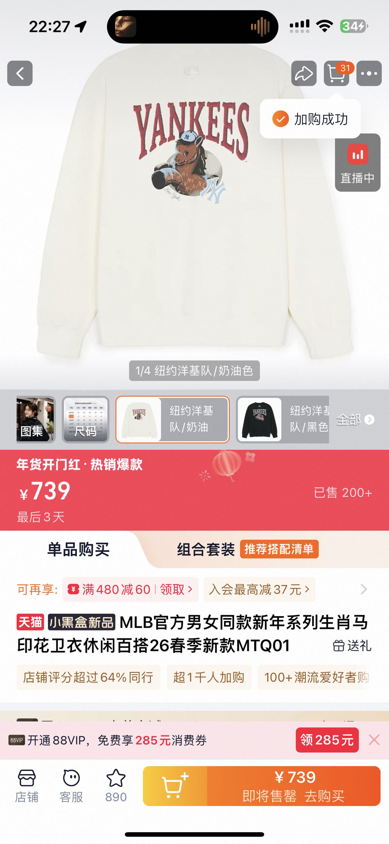 今天这款#MLB马年限定卫衣必须要拥有!圆领+连帽,潮酷穿搭😎