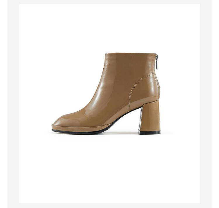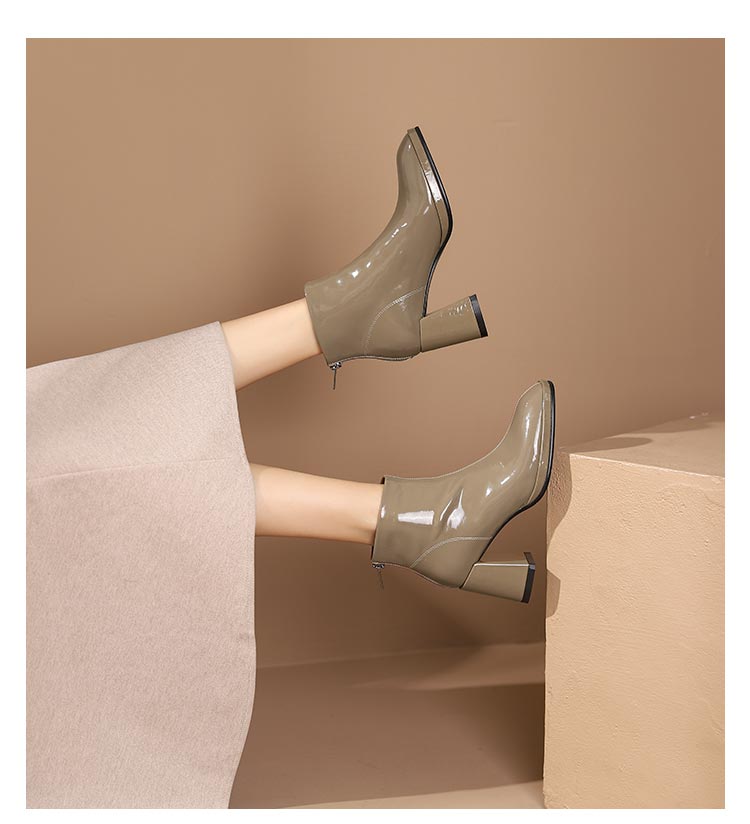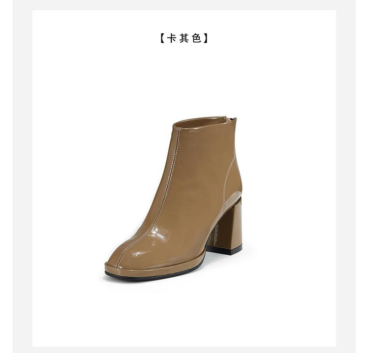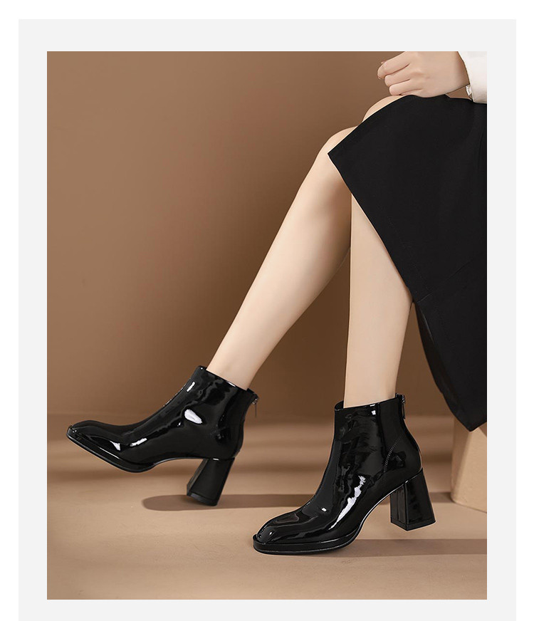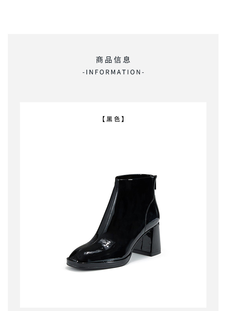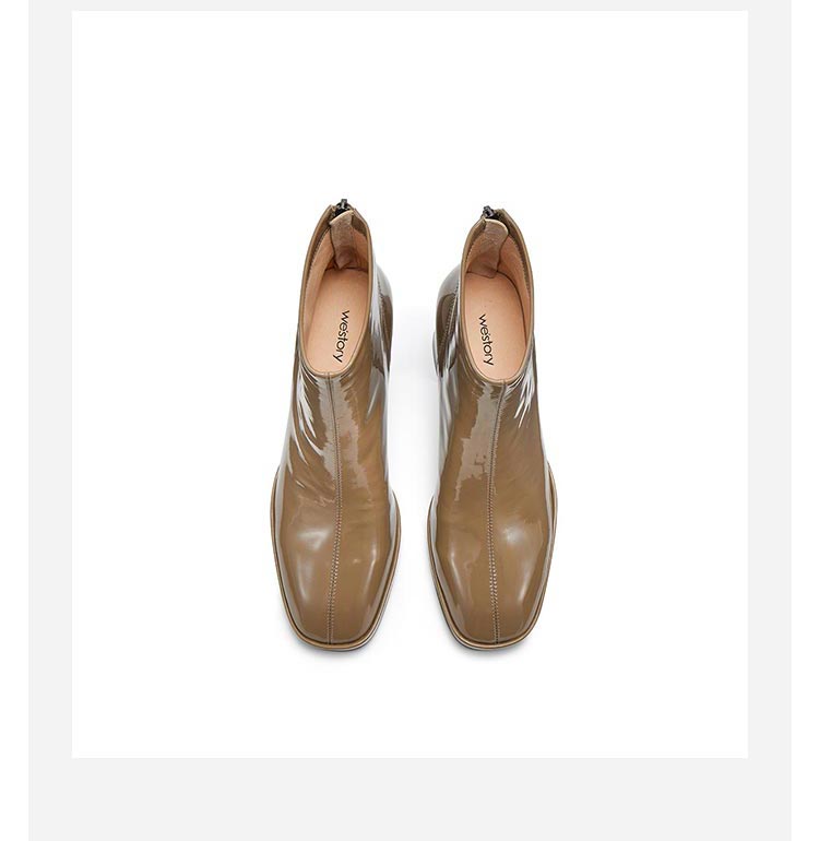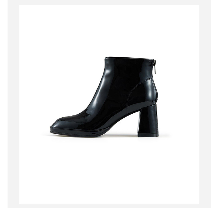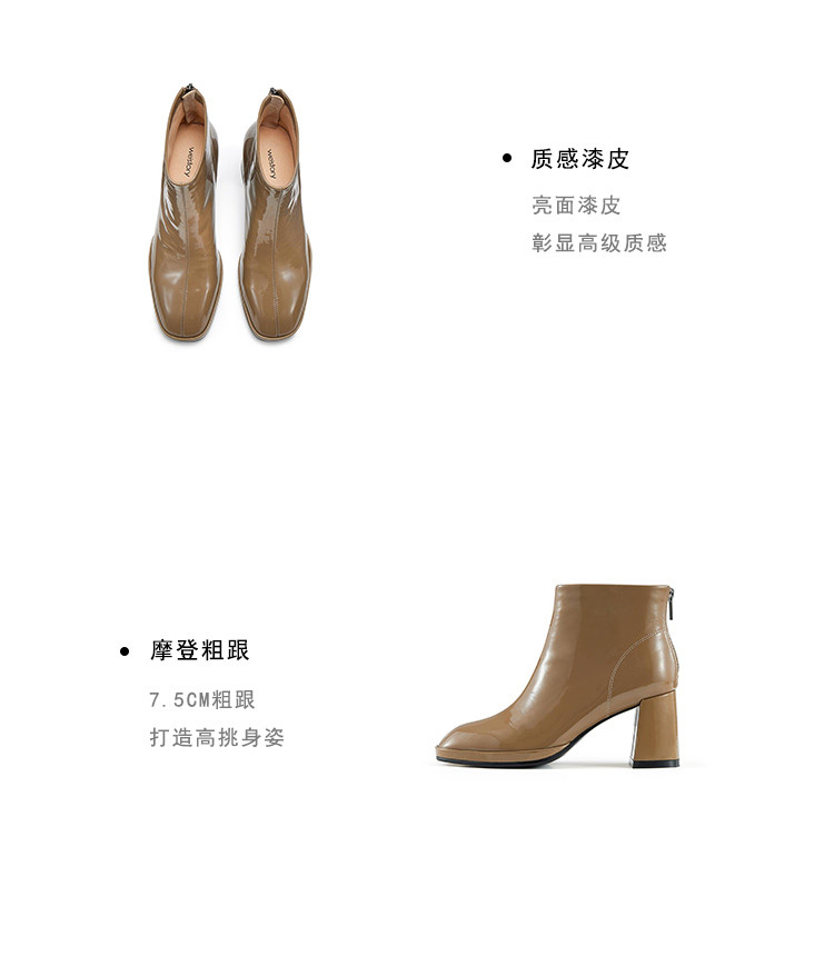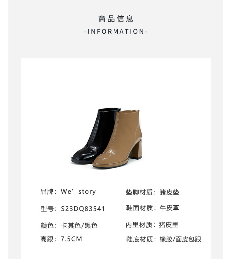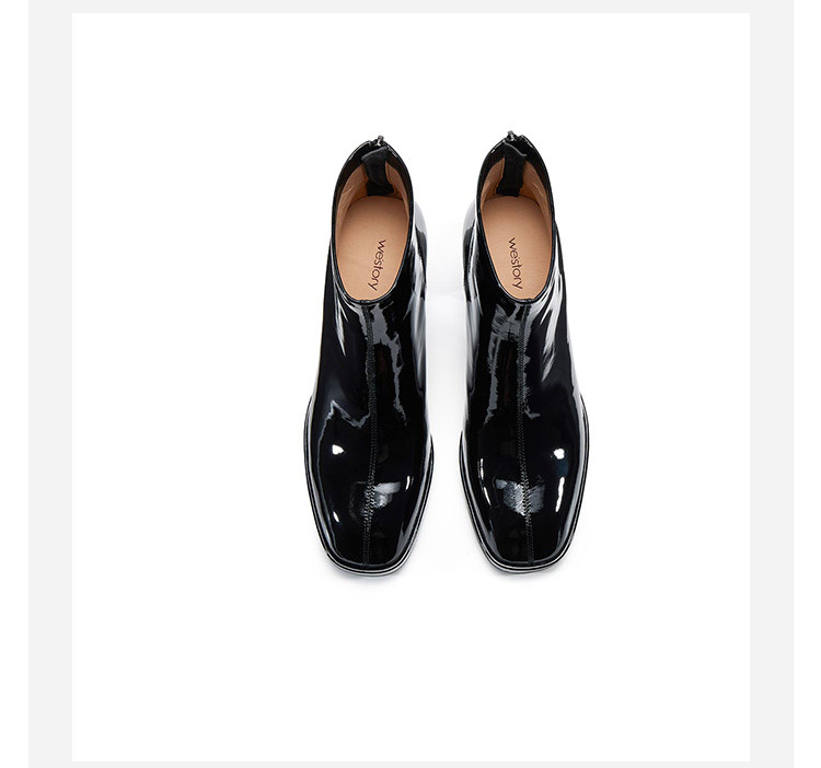 WESTORY2023年冬季新款方头亮面粗高跟时装靴时髦百搭短靴女S23DS83591