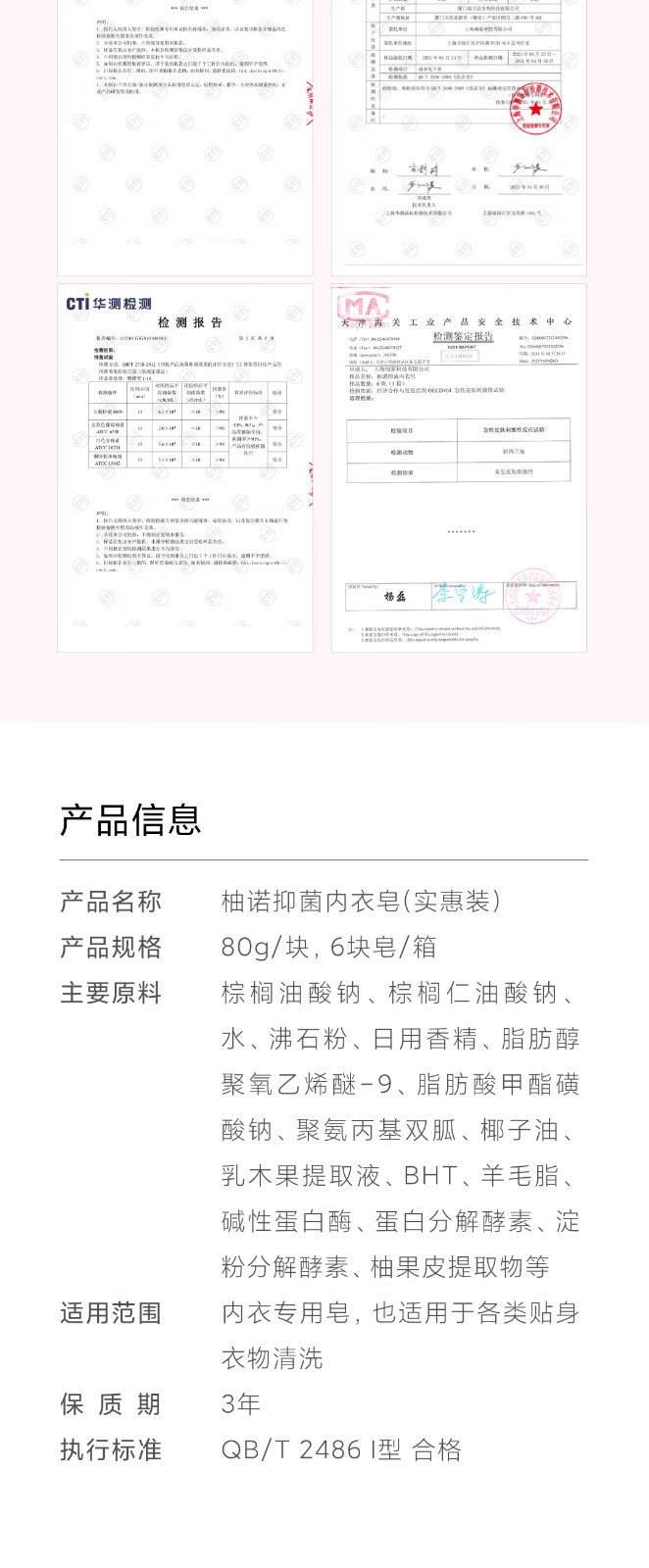 【分仓直发包邮】柚诺抑菌内衣皂(实惠装)80g*6块