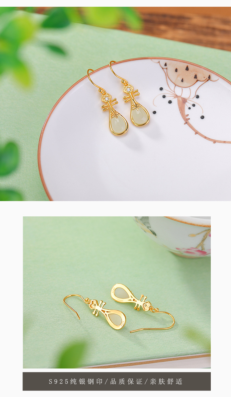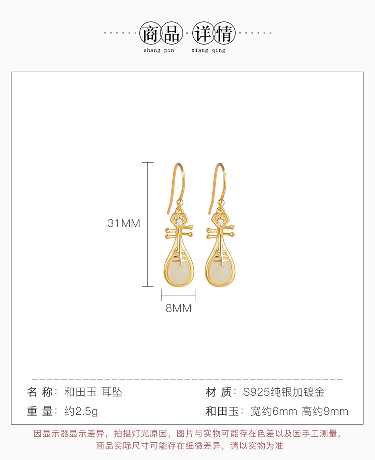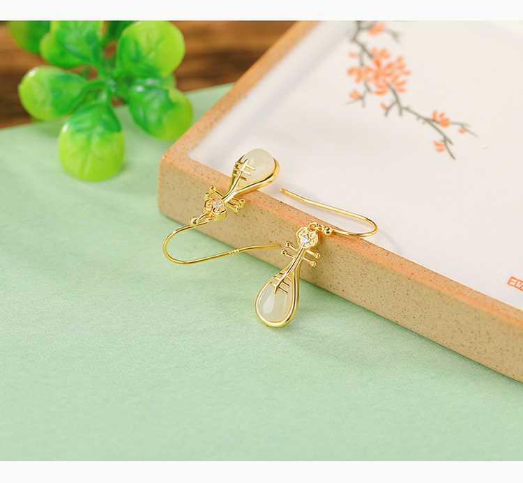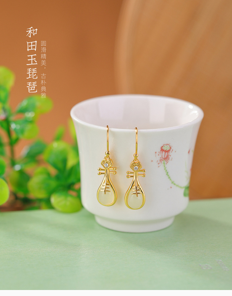 【琵琶轻音】S925纯银镀金和田玉白玉琵琶耳坠【CW-EG02225】
