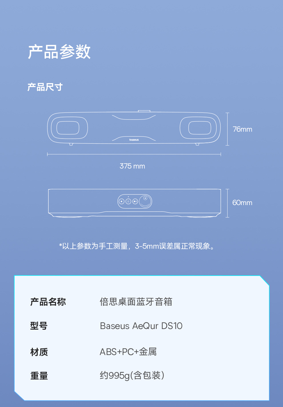 倍思 AeQur系列 DS10 桌面Mini Soundbar音箱 (电池版)