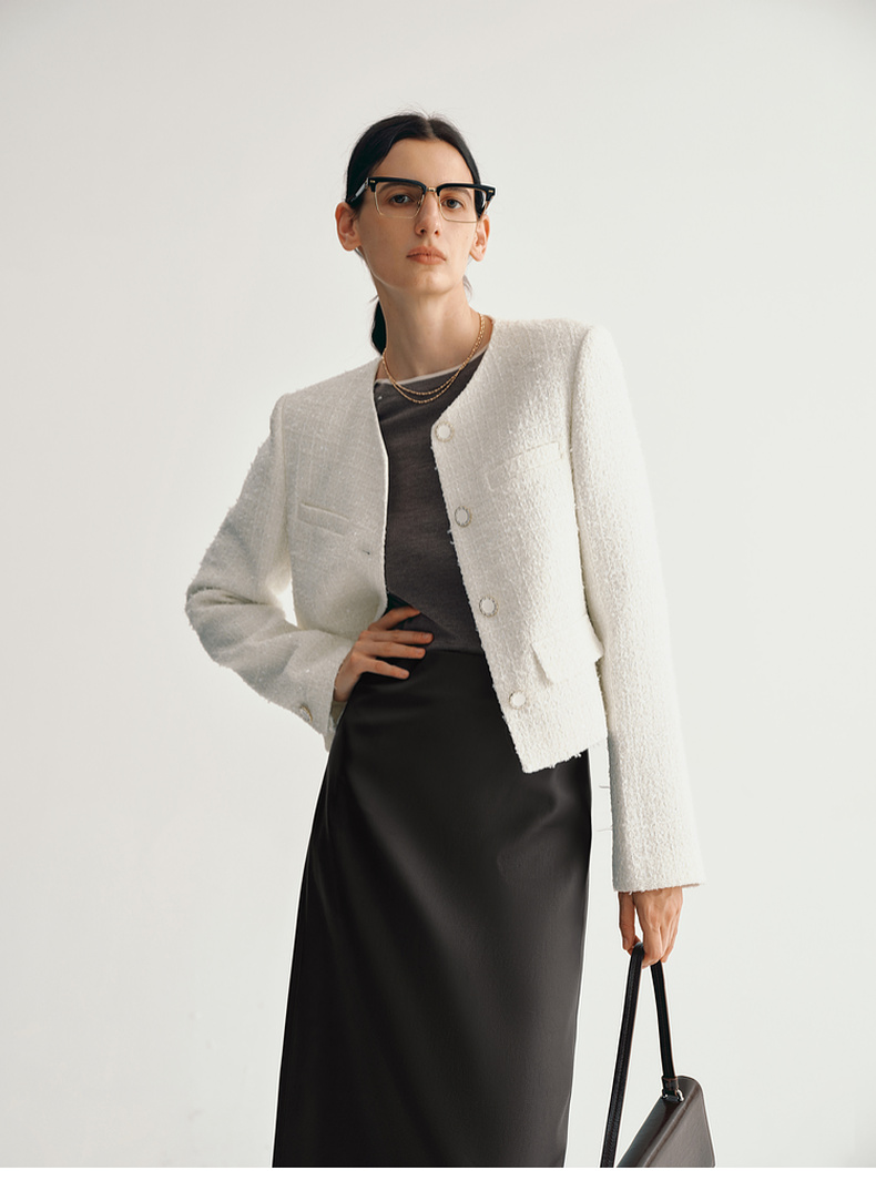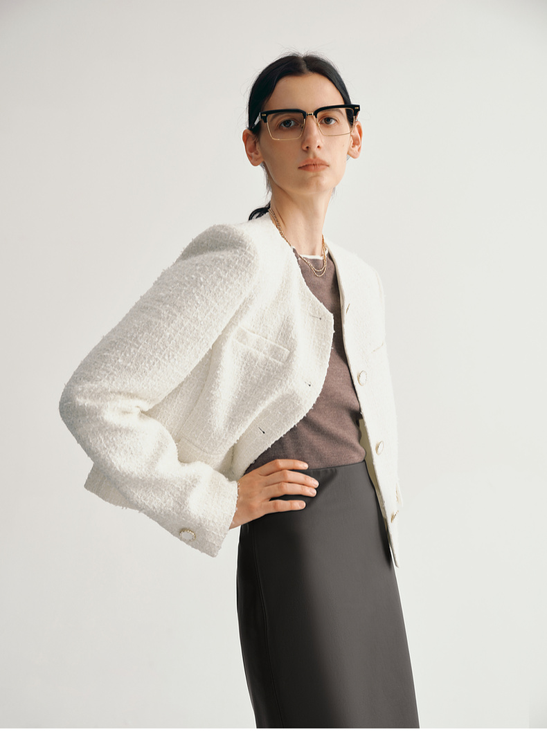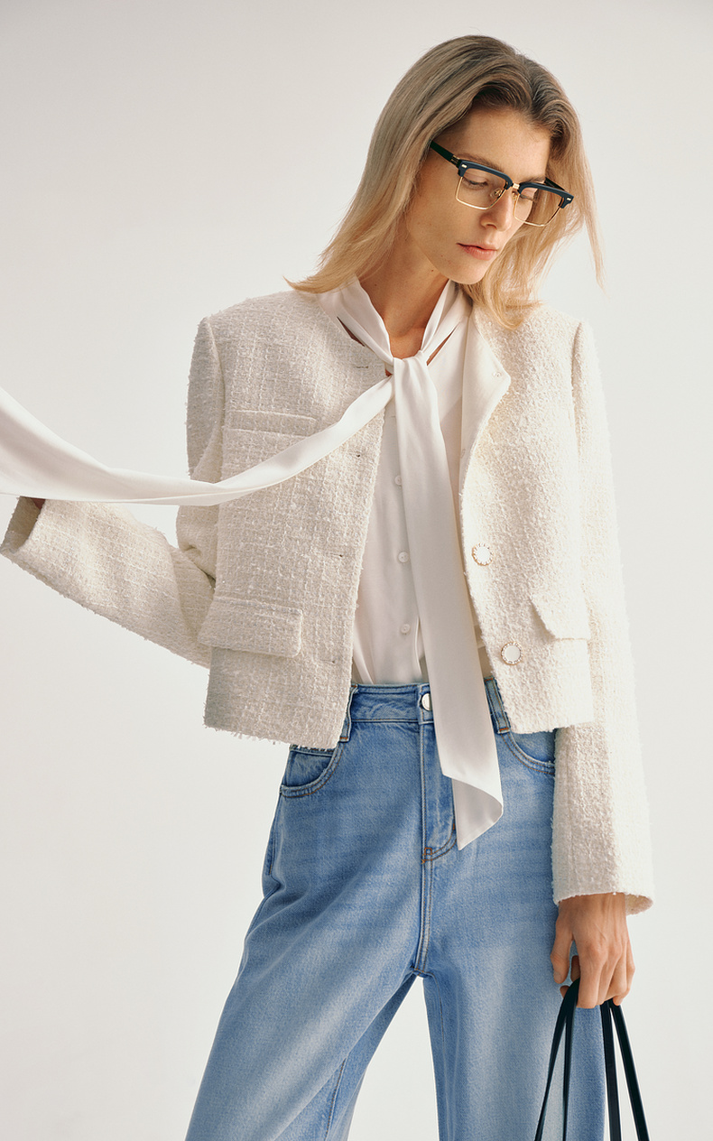 【商场同款】麦檬春秋V领垫肩肌理感显瘦小外套5F8213781