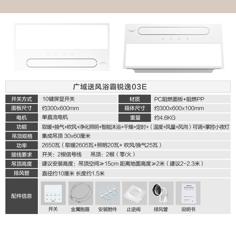 OPPLE欧普照明石墨烯风暖浴霸抱抱暖一体集成吊顶浴室卫生间排气扇暖风机锐逸