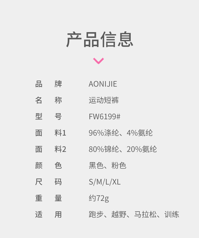 奥尼捷女士运动短裤透气速干可放手机运动短裤马拉松训练跑步球类运动短裤FW6199