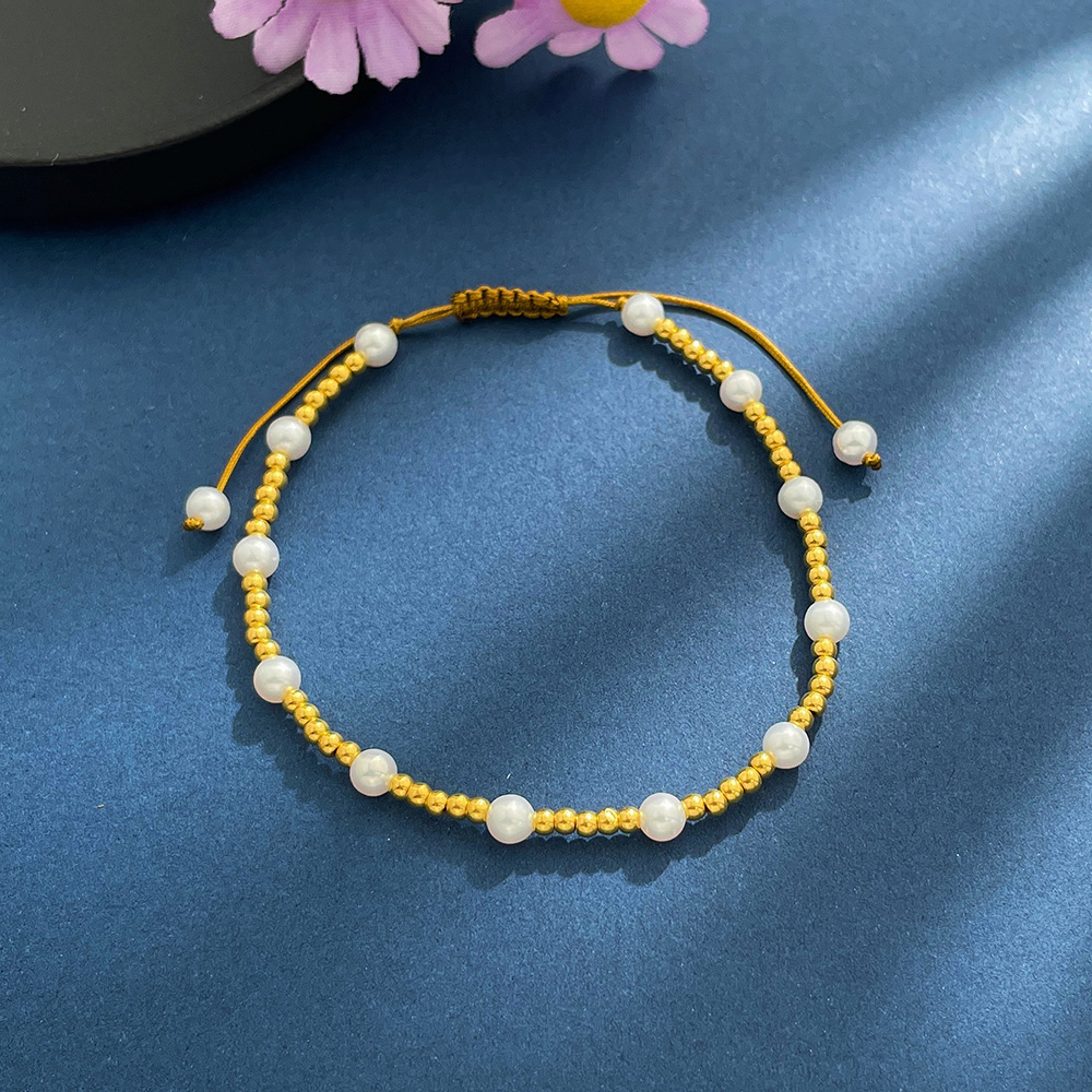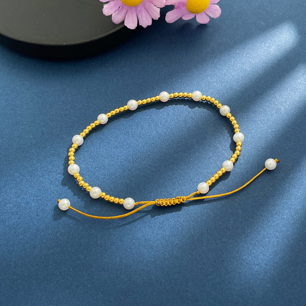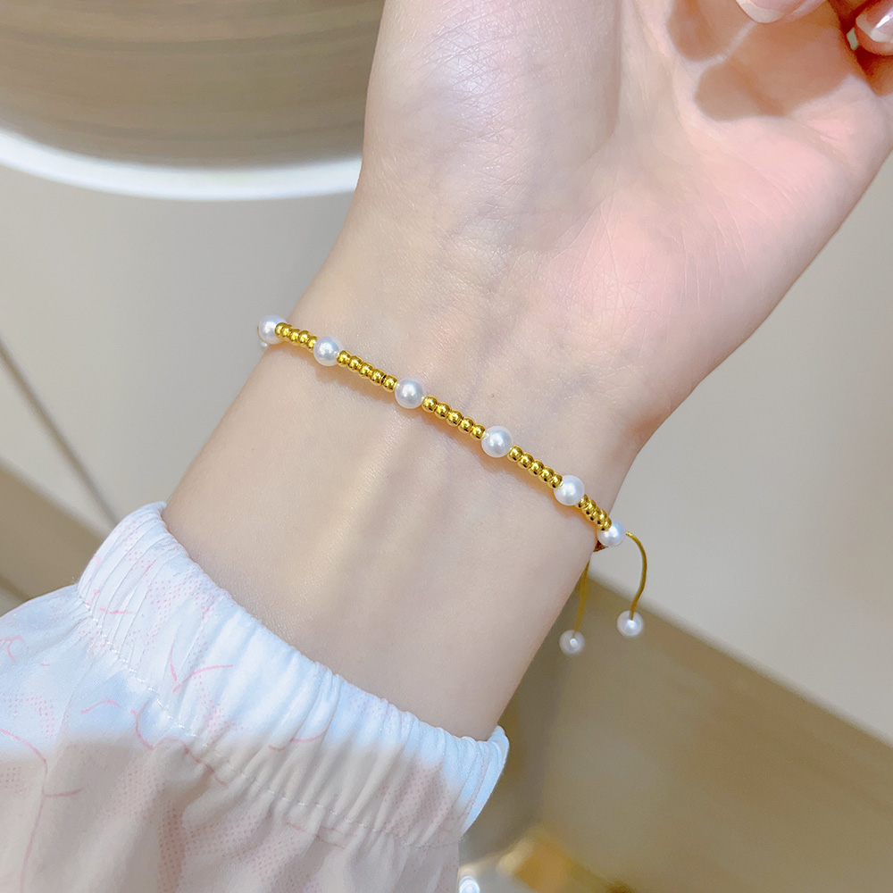 【限时7.5折】【定价黄金】足金 #电商超轻 无氰5D硬金转运圆珠光珠间淡水珍珠编织绳调节成品手串(RFXJB0078-304)【补手工费可以换新的绳子】(预售产品下单后不退款不退货不换货不补差价)