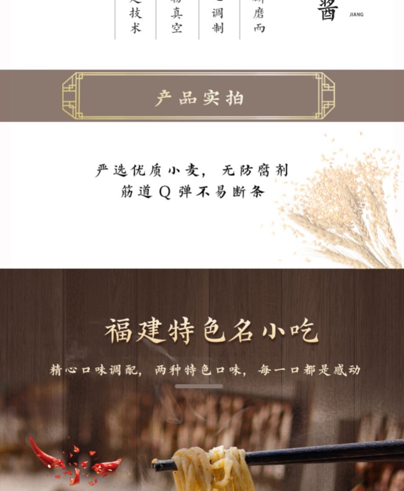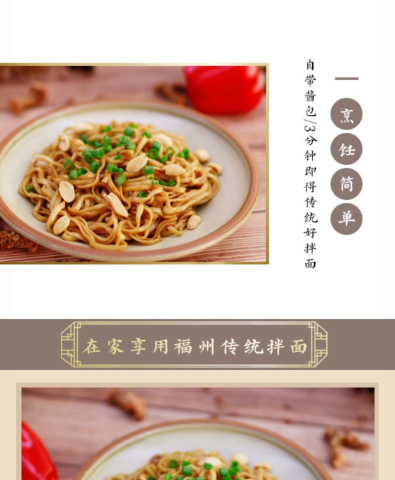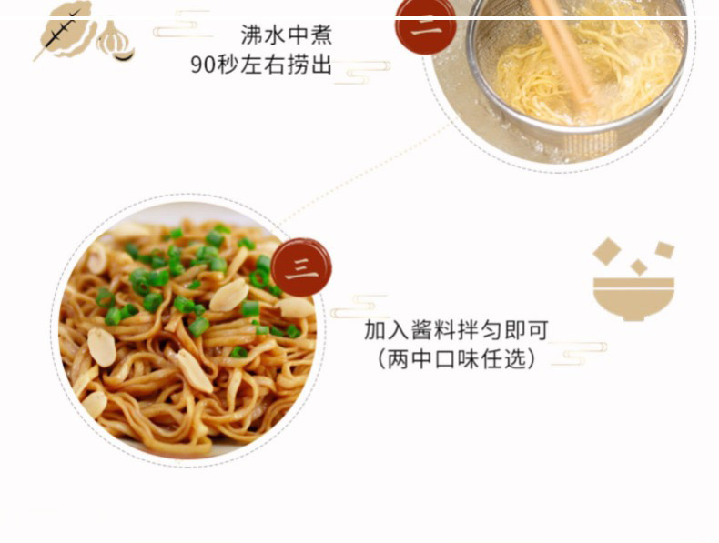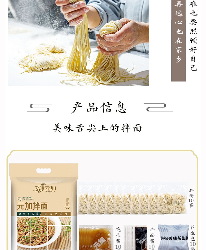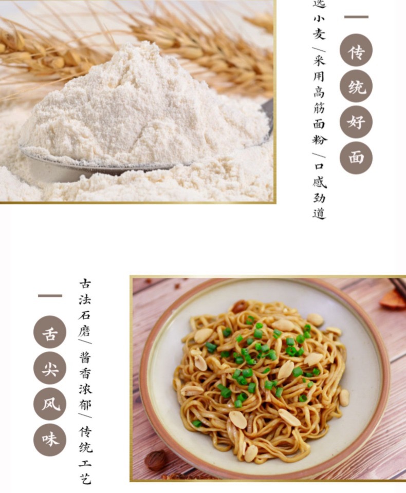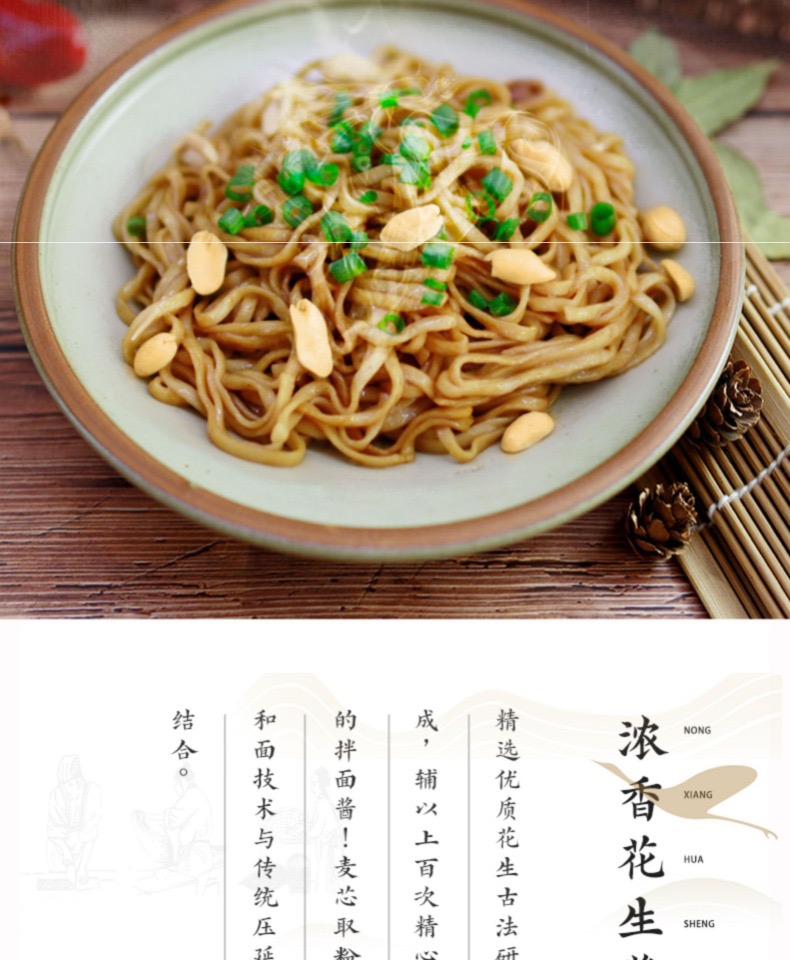 精选高筋小麦面粉、新鲜花生酱、优质酱油等原料;