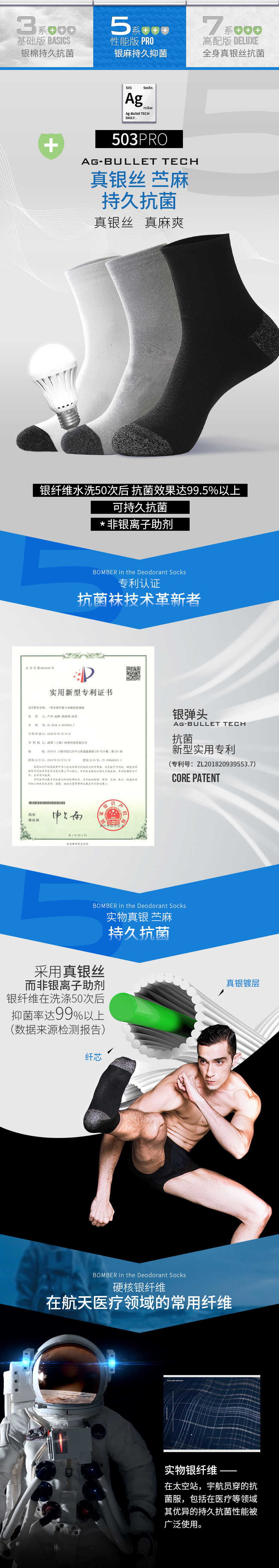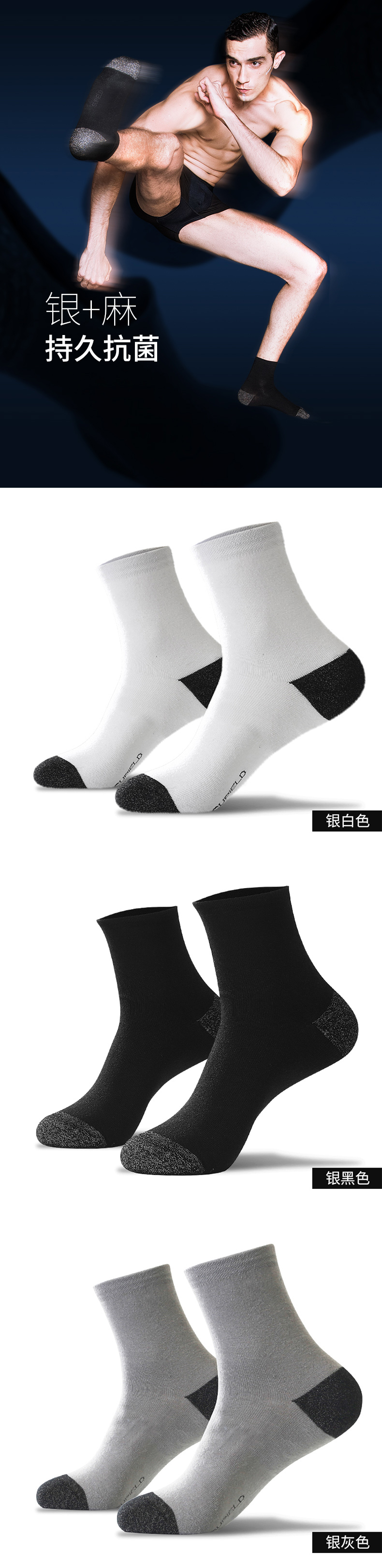 Supield黑科技银麻抗菌情侣袜子男袜女袜吸汗抑菌棉袜商务中筒袜