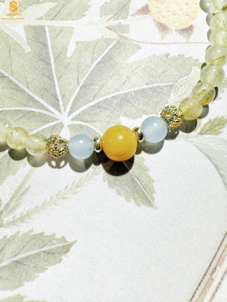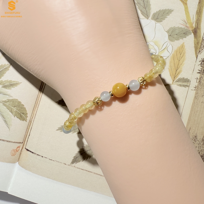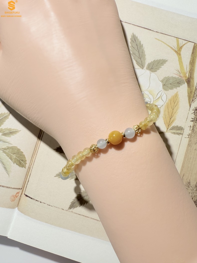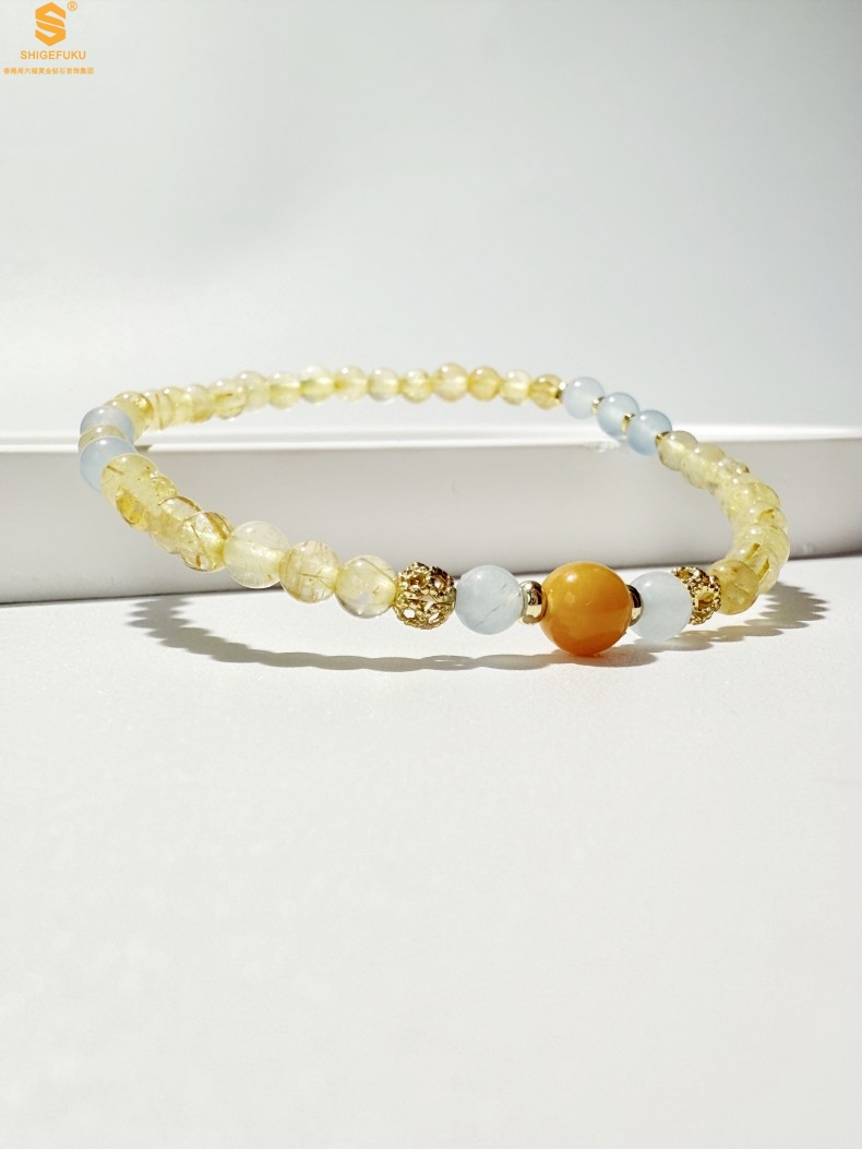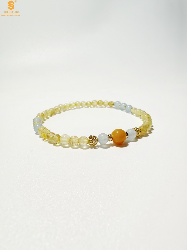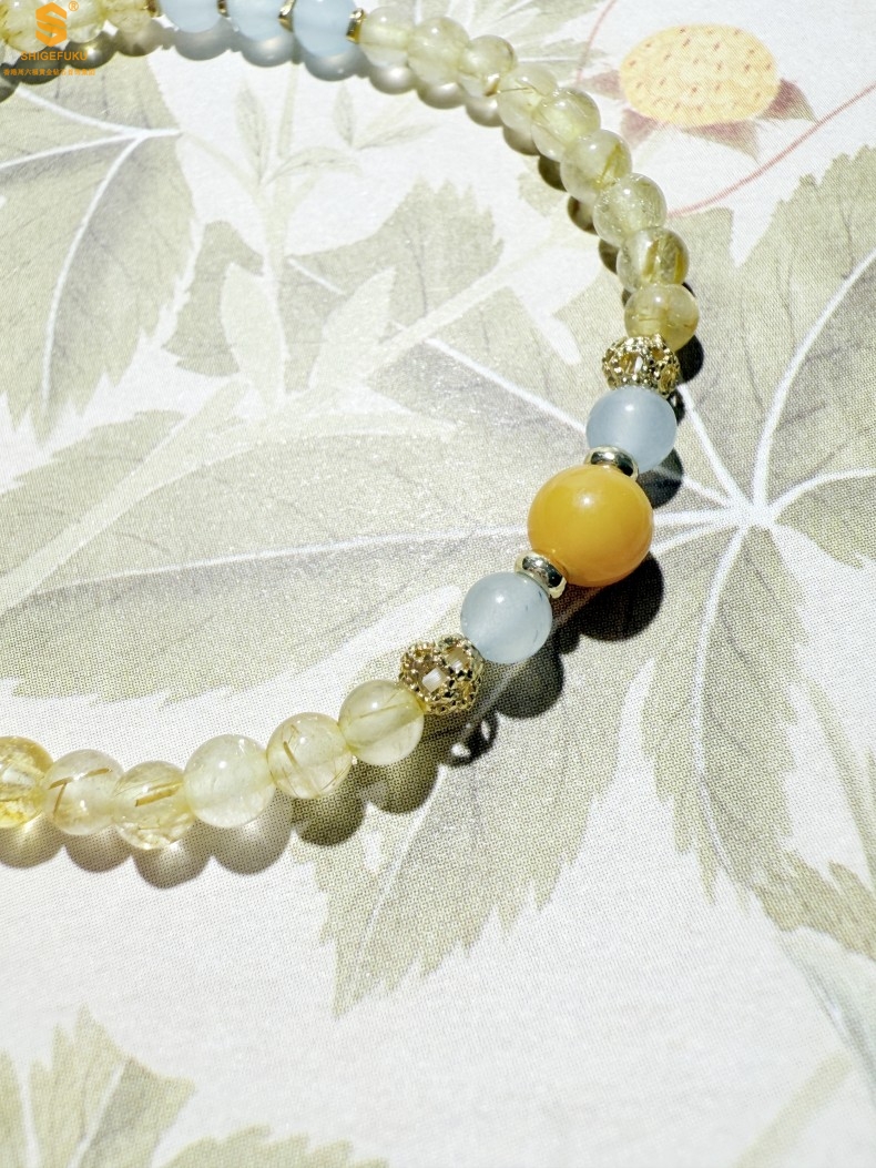 【品名】原创「金舆」喜土水丨新中式国风金发晶蓝玛瑙蜜蜡聚财手链