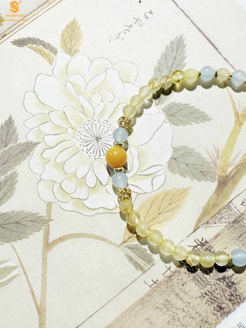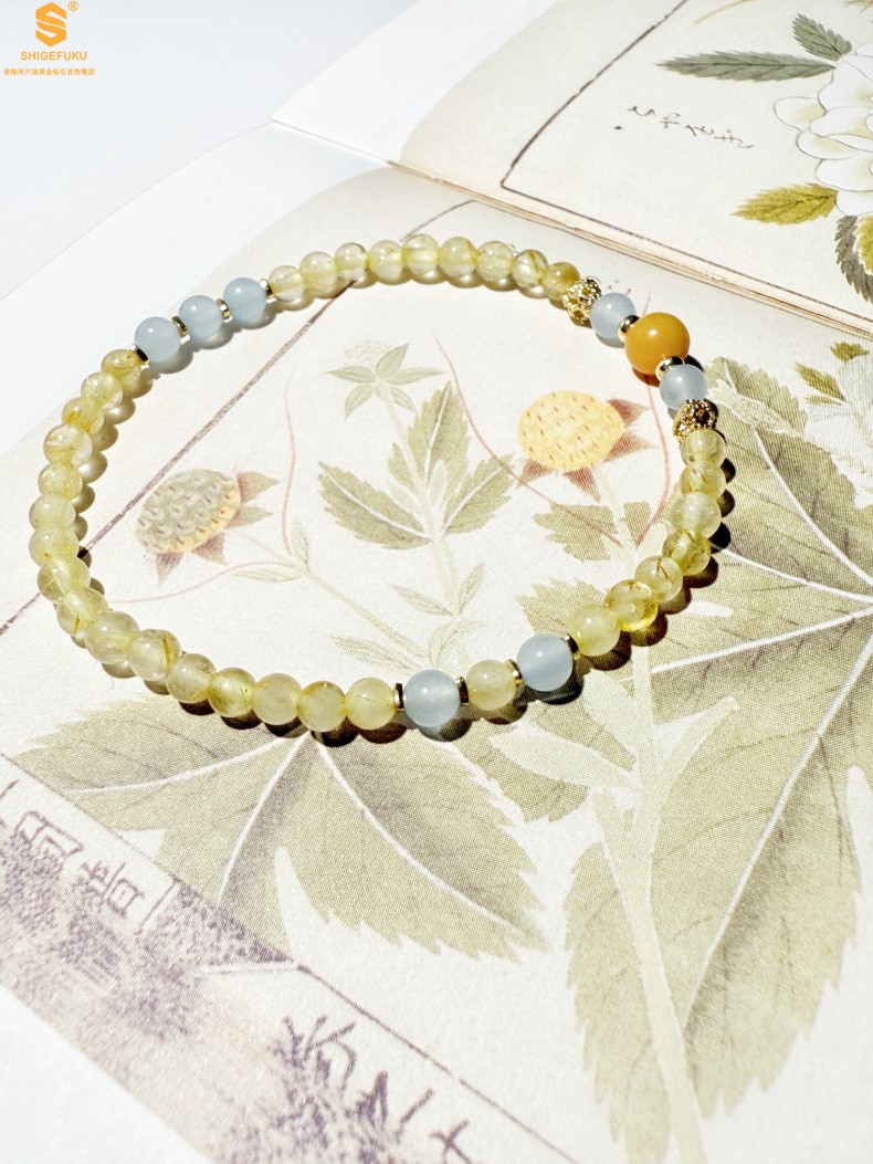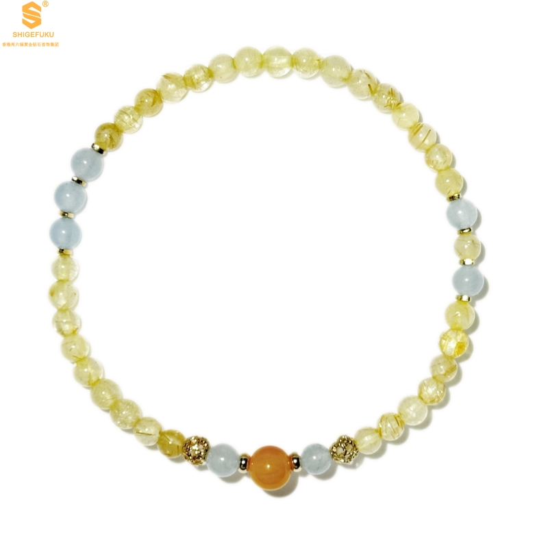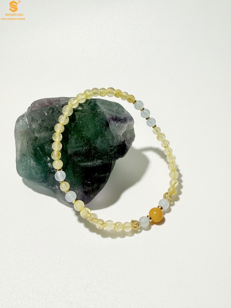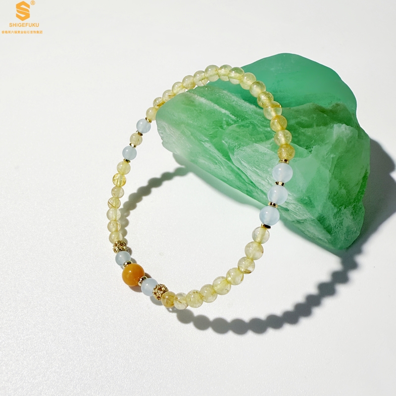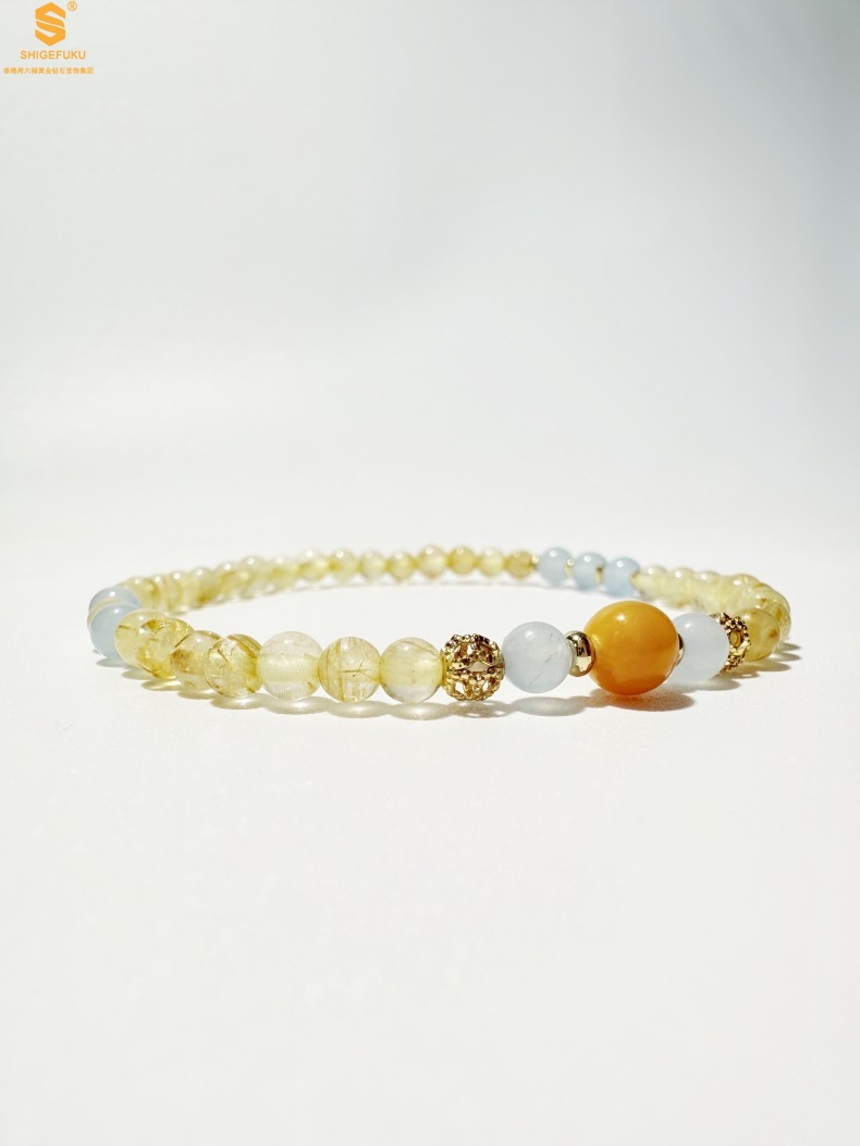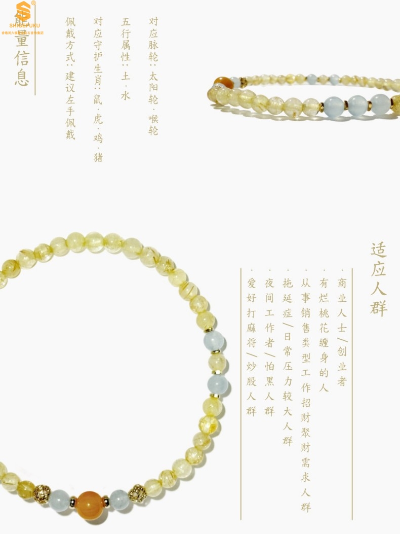 【品名】原创「金舆」喜土水丨新中式国风金发晶蓝玛瑙蜜蜡聚财手链