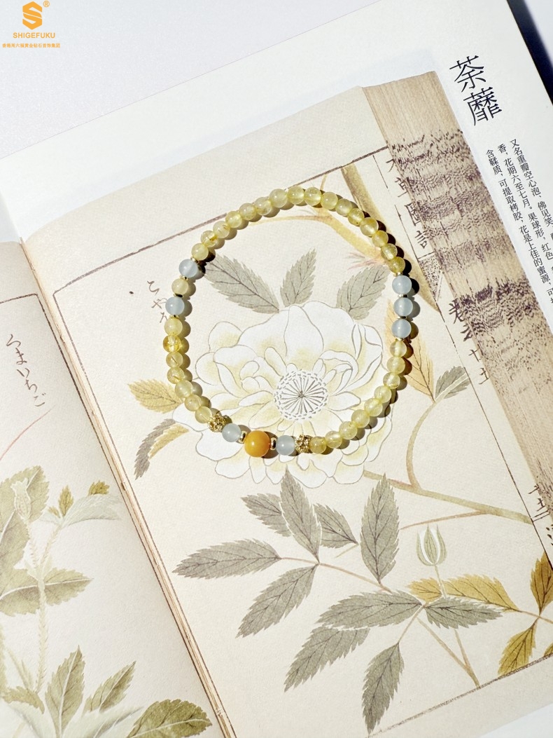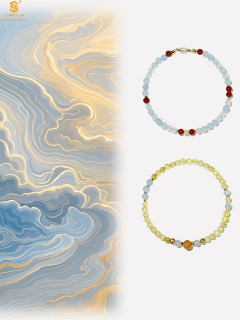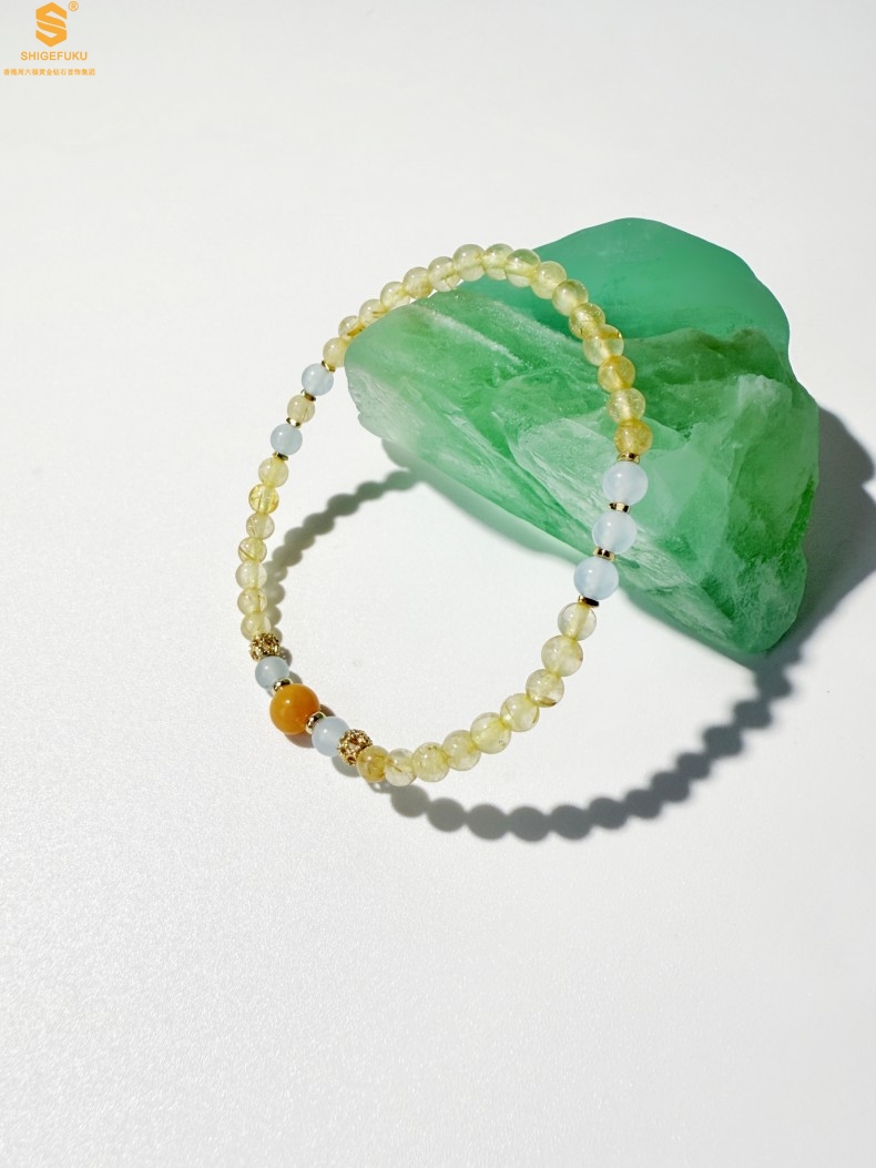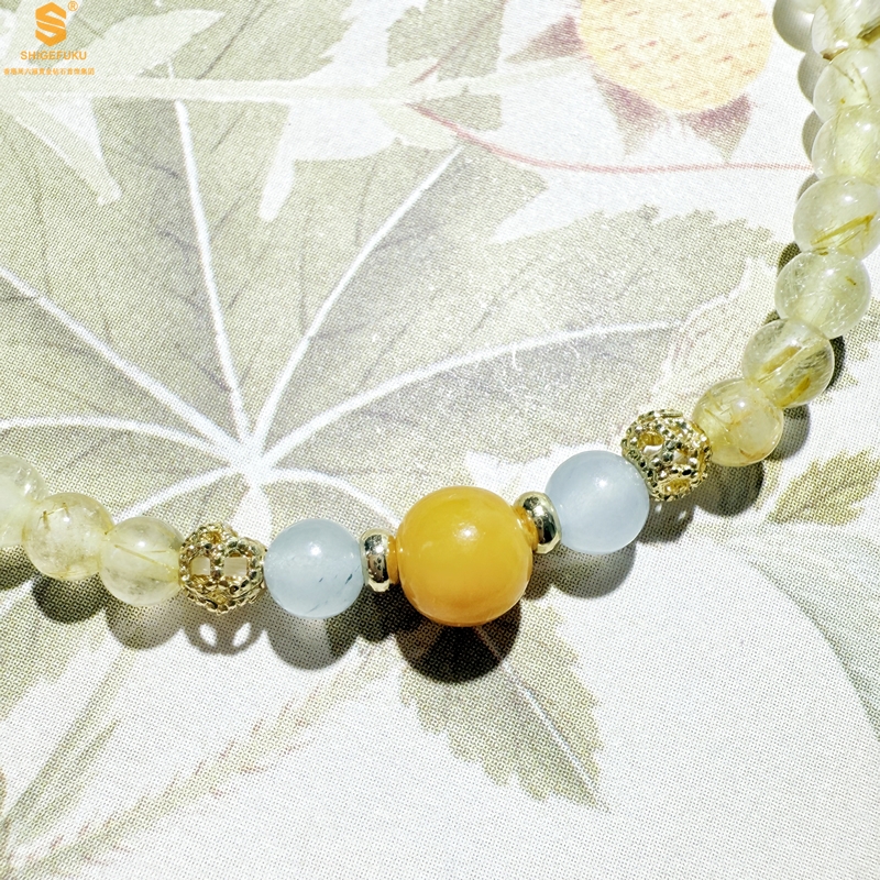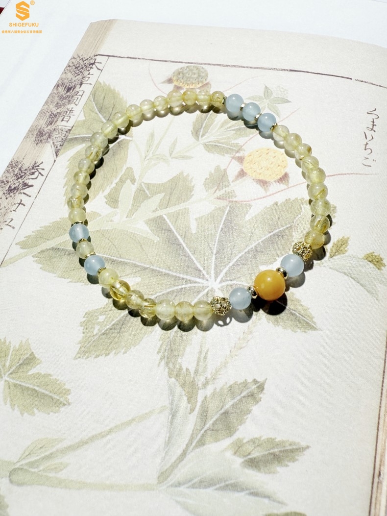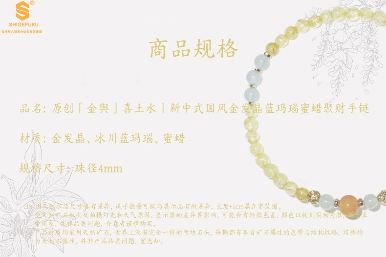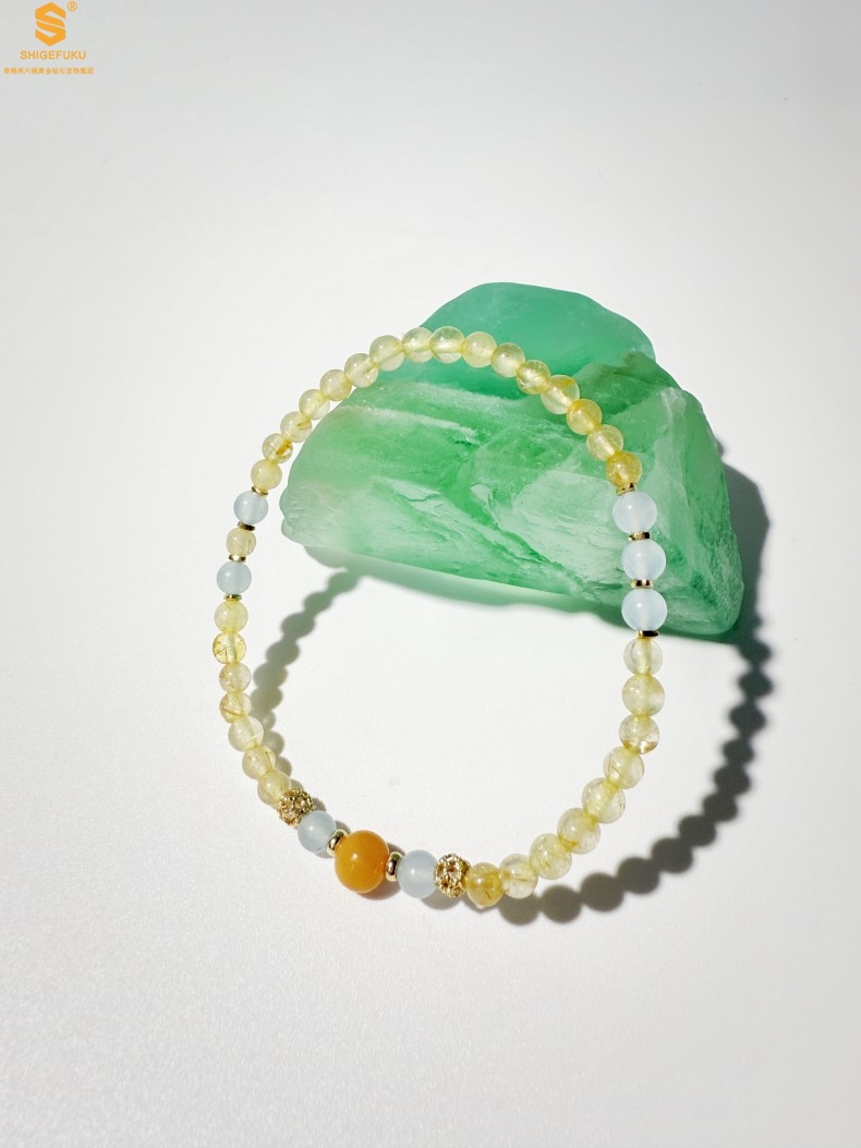 【品名】原创「金舆」喜土水丨新中式国风金发晶蓝玛瑙蜜蜡聚财手链