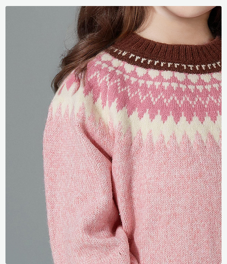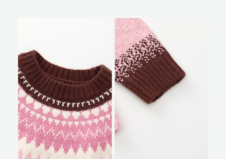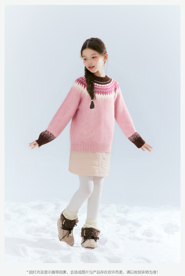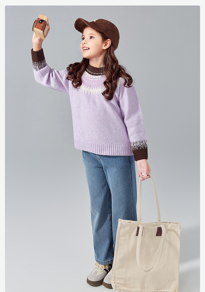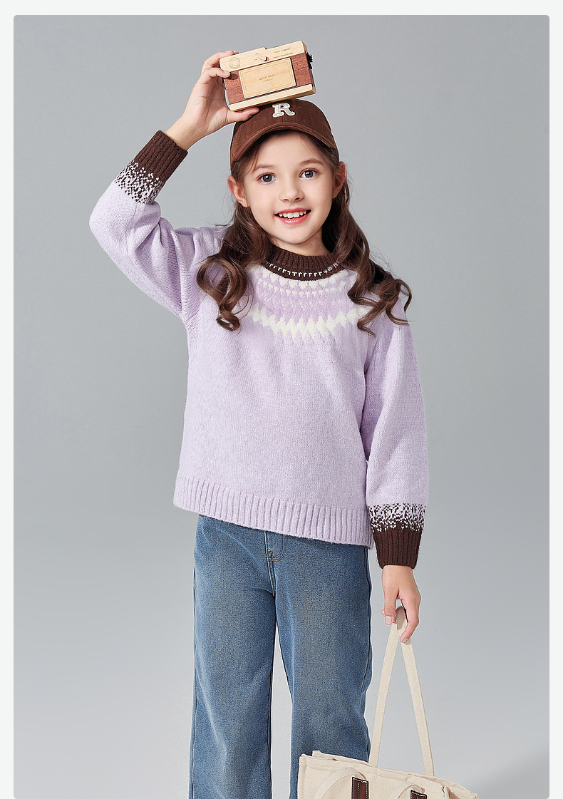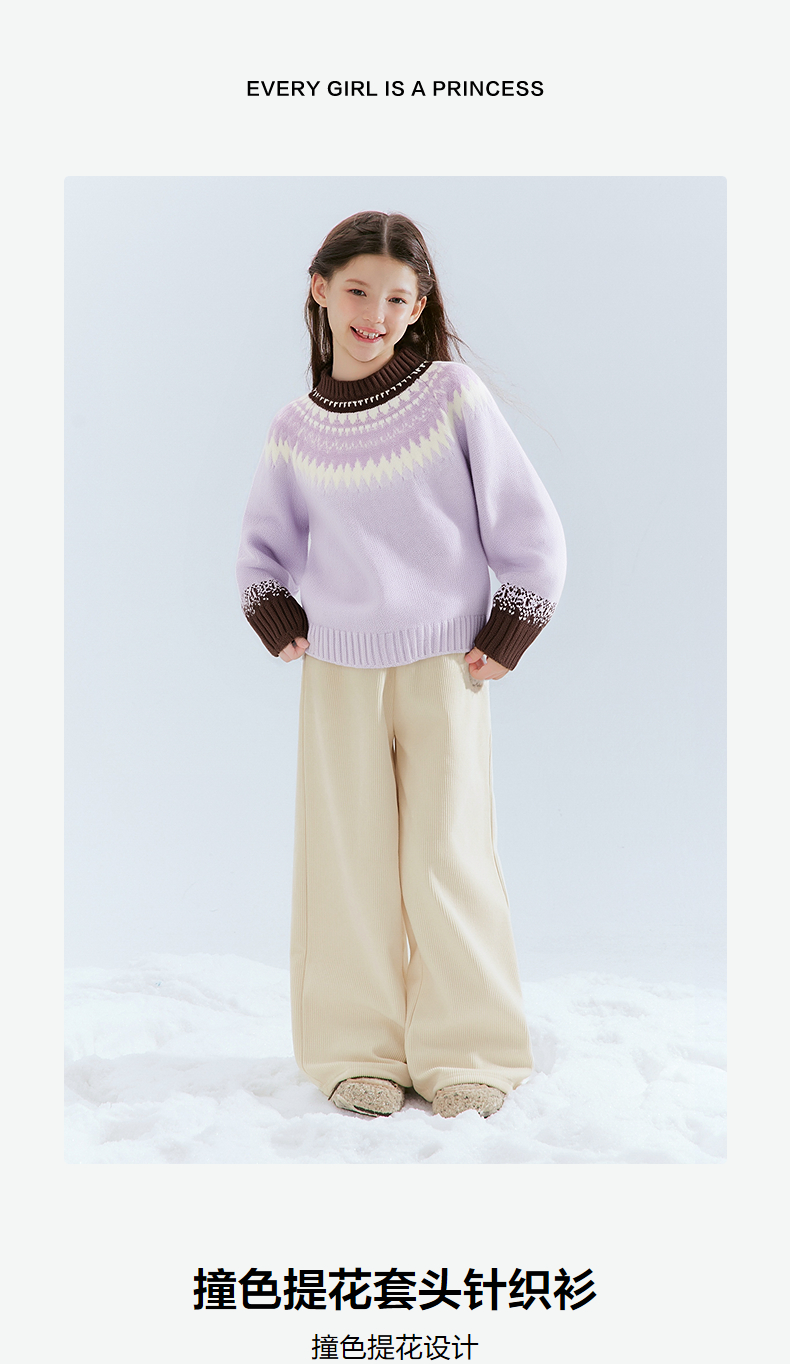 笛莎童装女童毛衫冬季新款儿童撞色提花套头针织衫