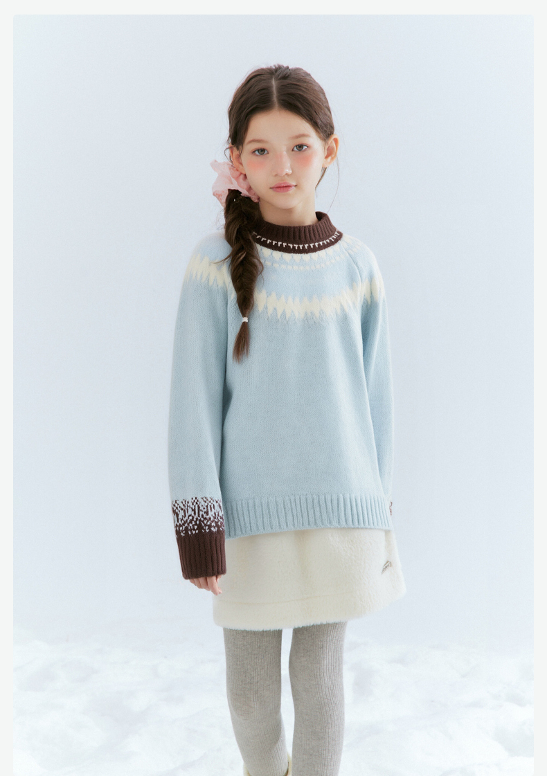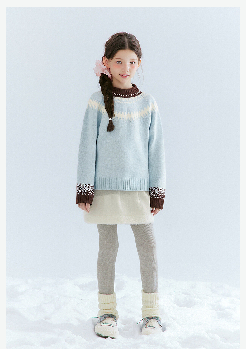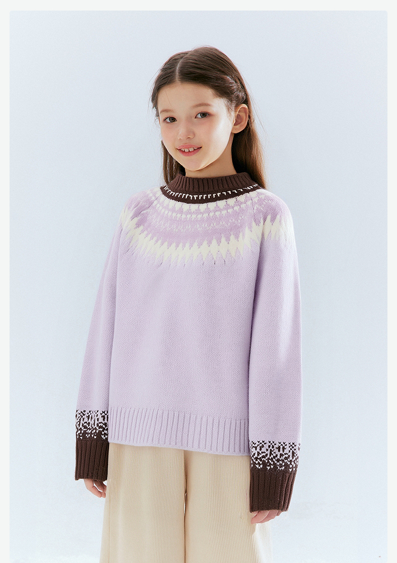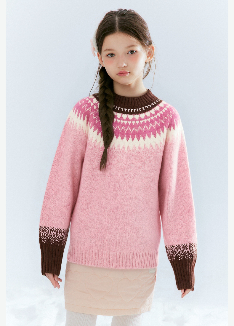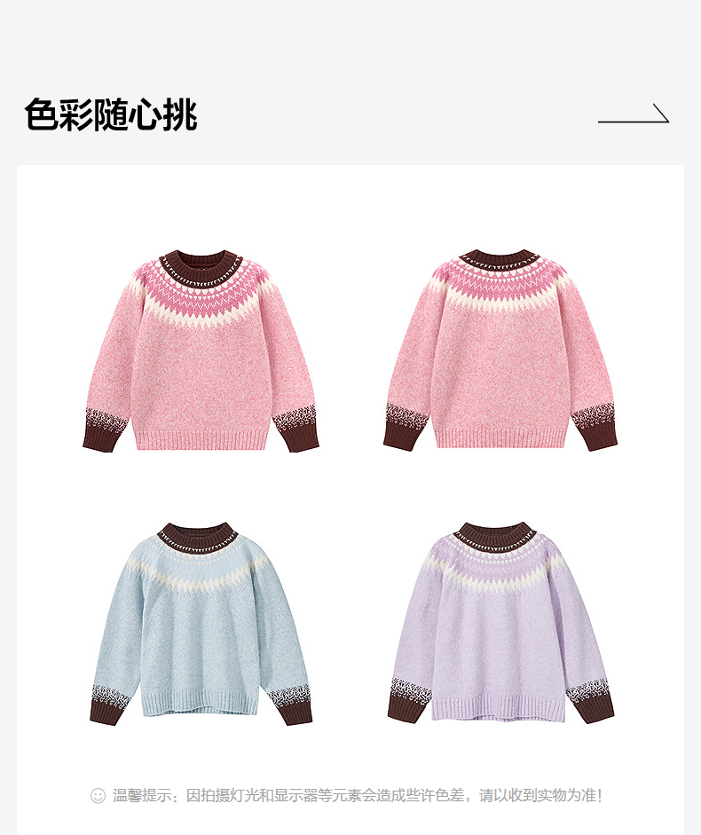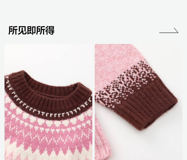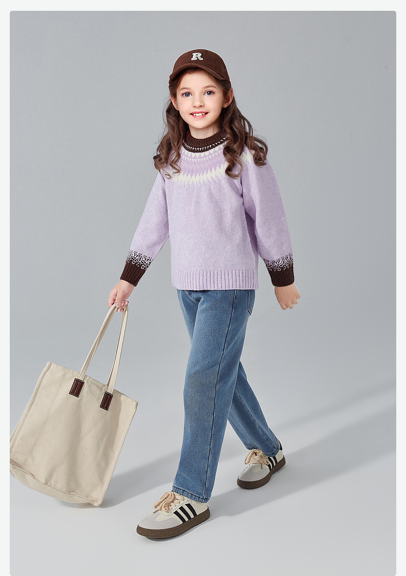 笛莎童装女童毛衫冬季新款儿童撞色提花套头针织衫