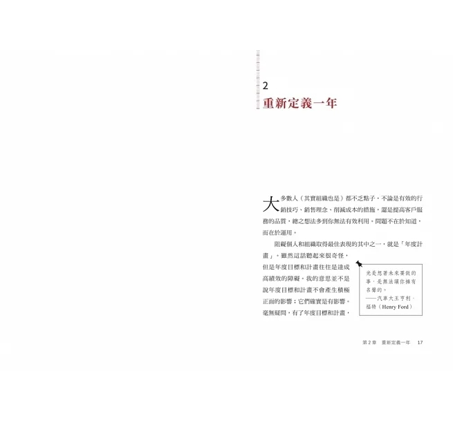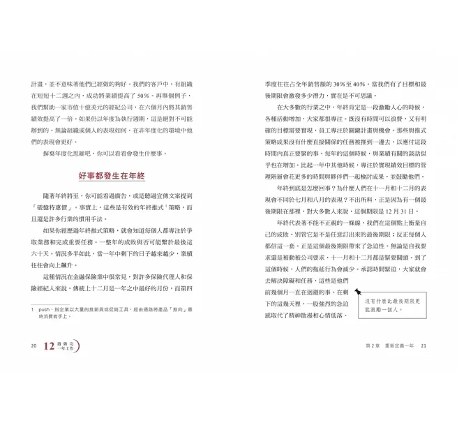 與年度計劃不同,「一年12週」是一種全新的時間管理法,意指「把12週當成你的一年」。這個方法是透過縮短時間和拆解目標,讓你更有效率、更有意識地使用時間,進而擺脫拖延和怠惰心態。不需要高深的技巧或學問,無論你是想提升工作績效、提高收入,或是培養運動習慣,你只要列出項目、貫徹執行,四個12週下來,成果就會像複利般狂飆。