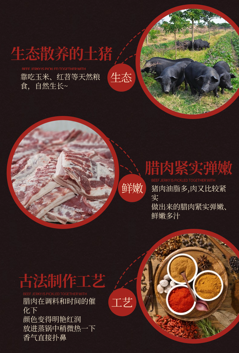 【产品亮点】口感层次分明,肥而不腻,不会过于咸