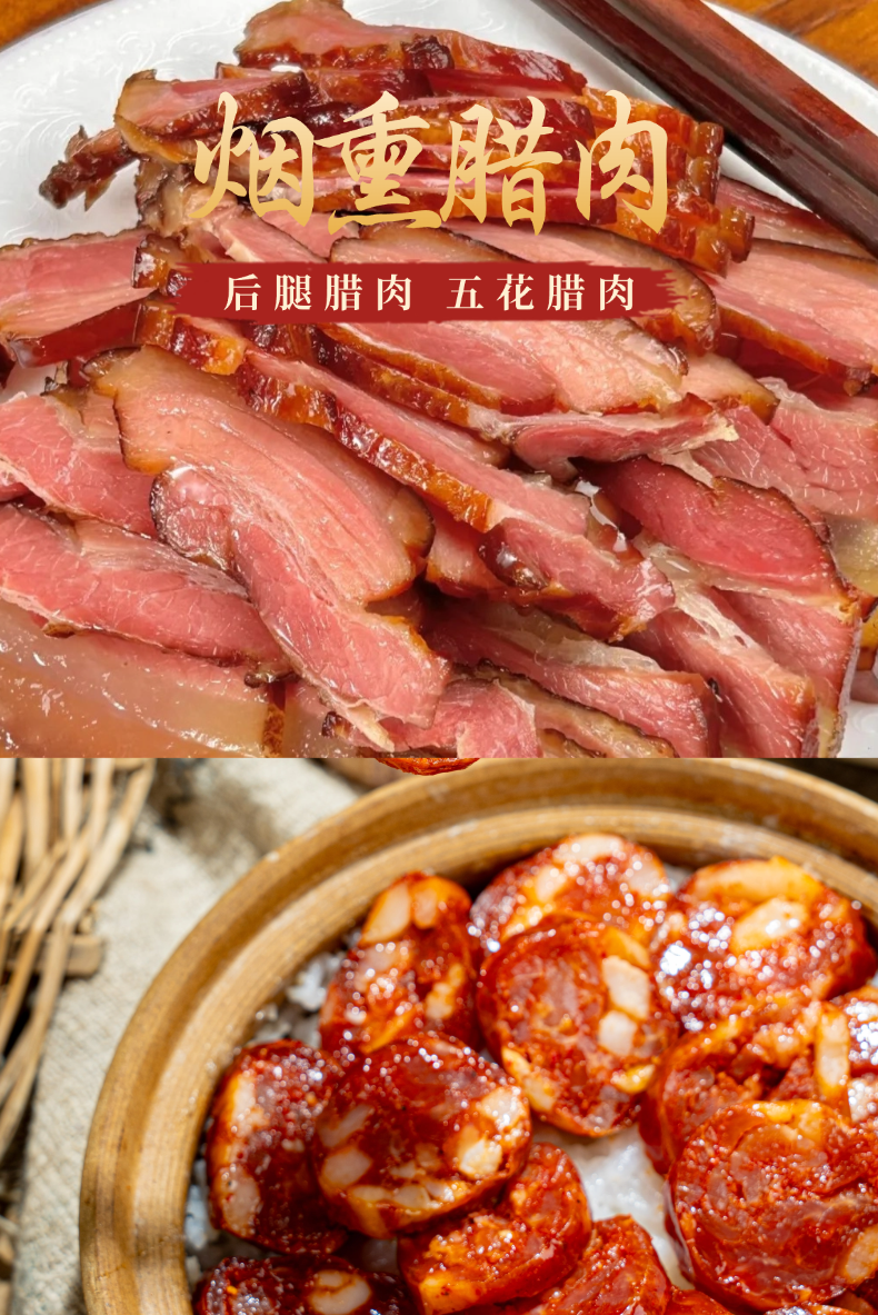 烟熏后腿腊肉*1袋+烟熏麻辣香肠*1袋