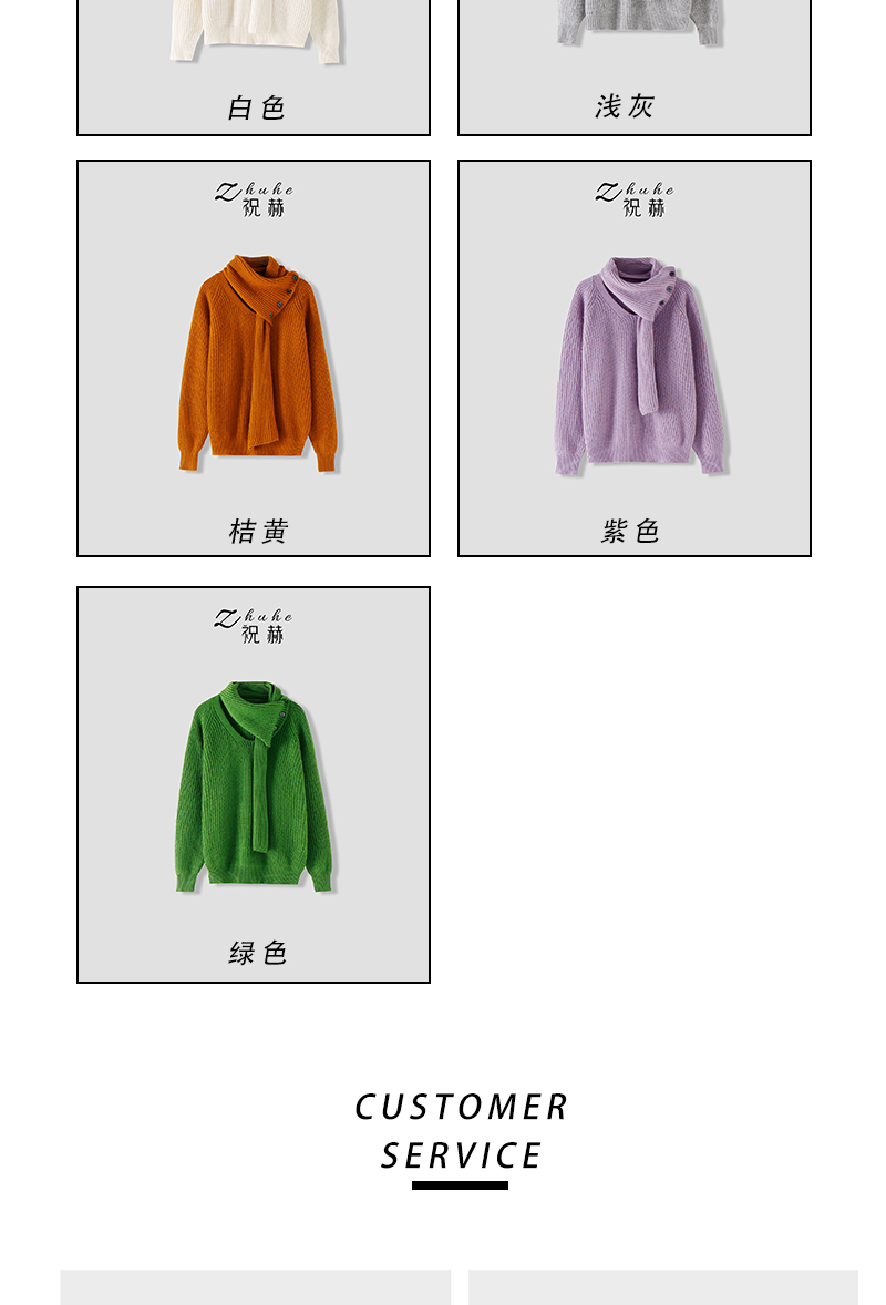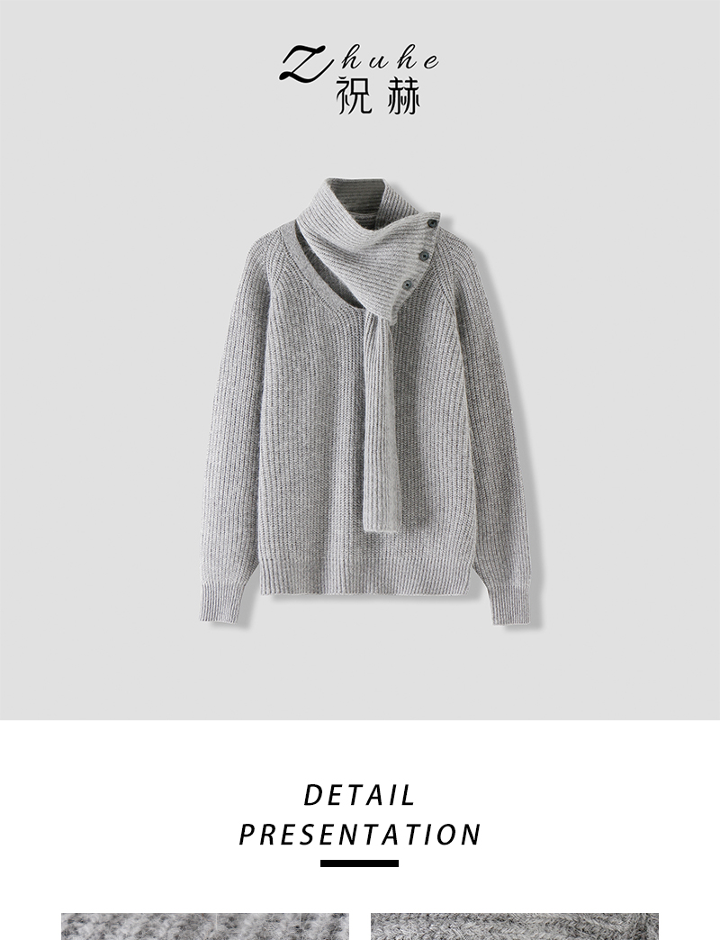 【合作款】ZHUHUE祝赫-时尚围巾V领宽松休闲毛衣针织衫-5DMZH301