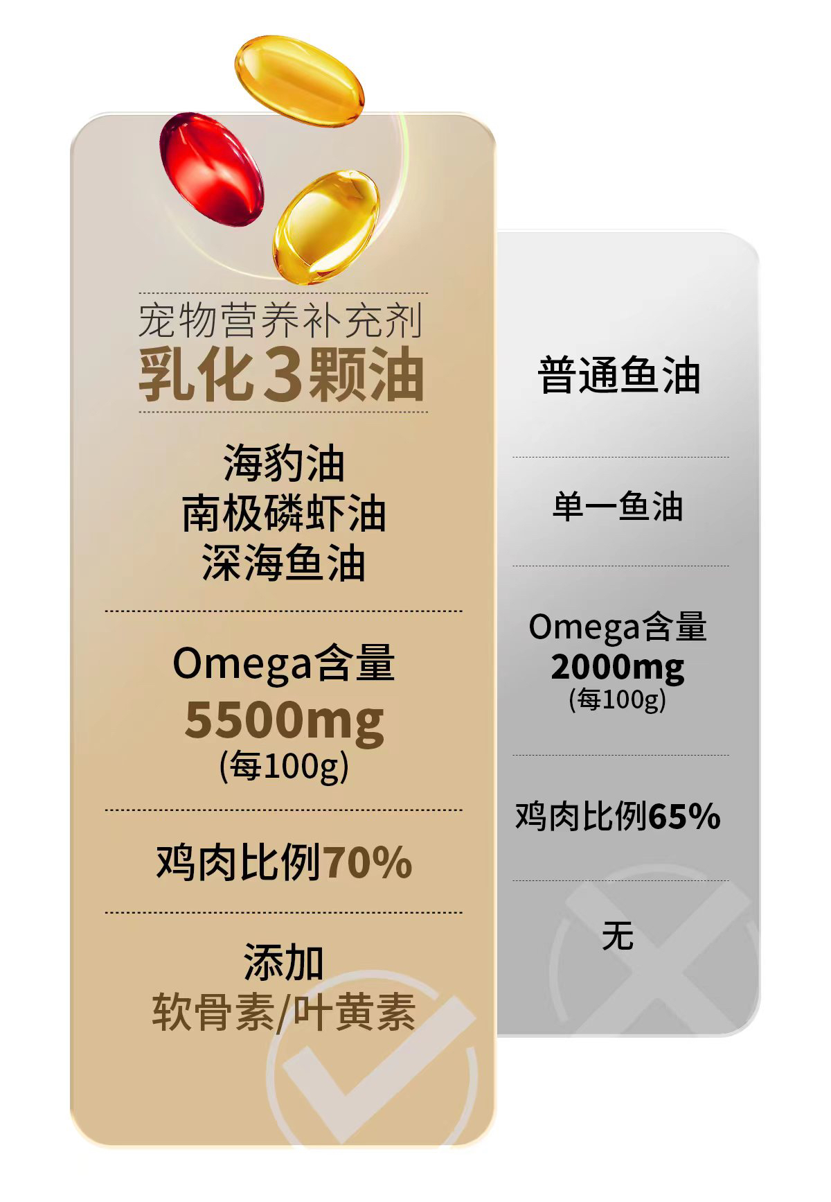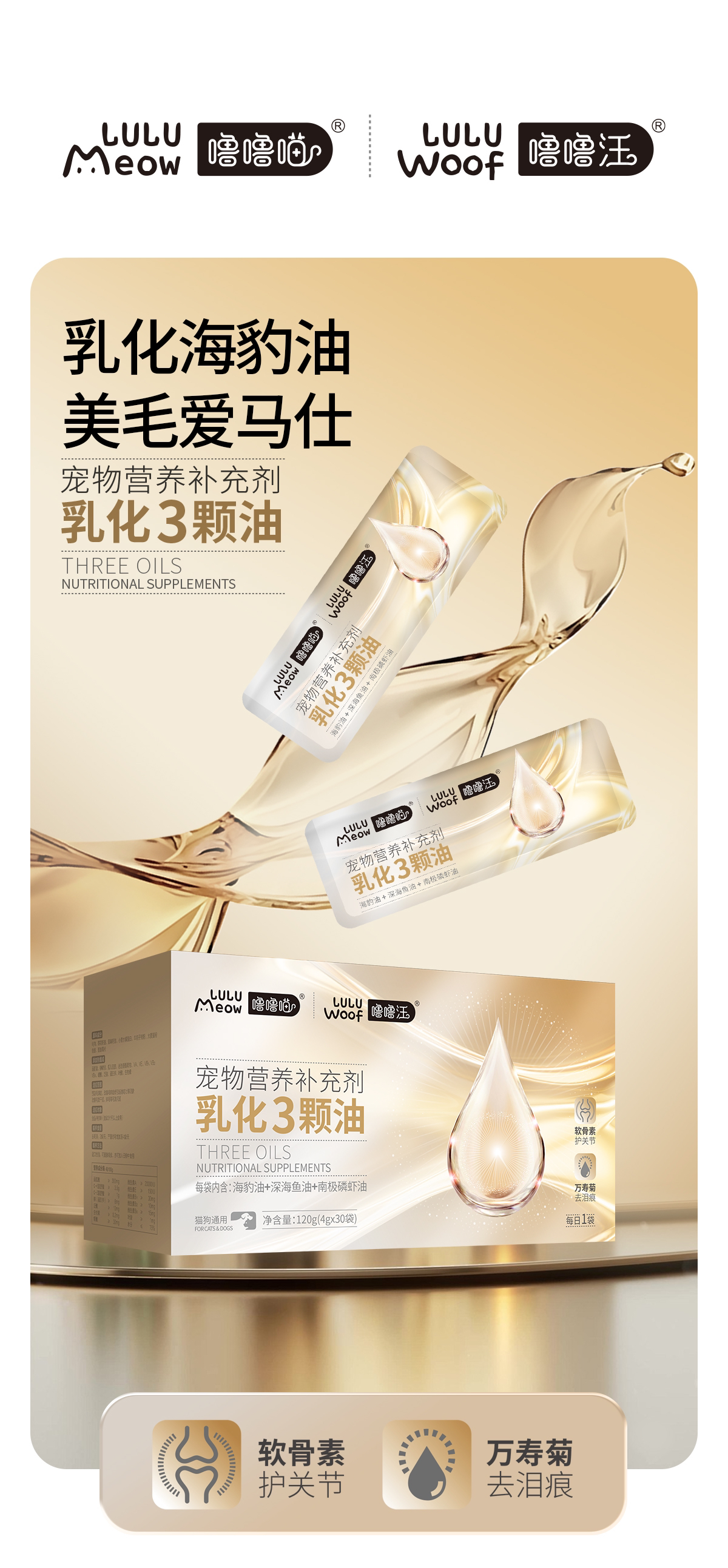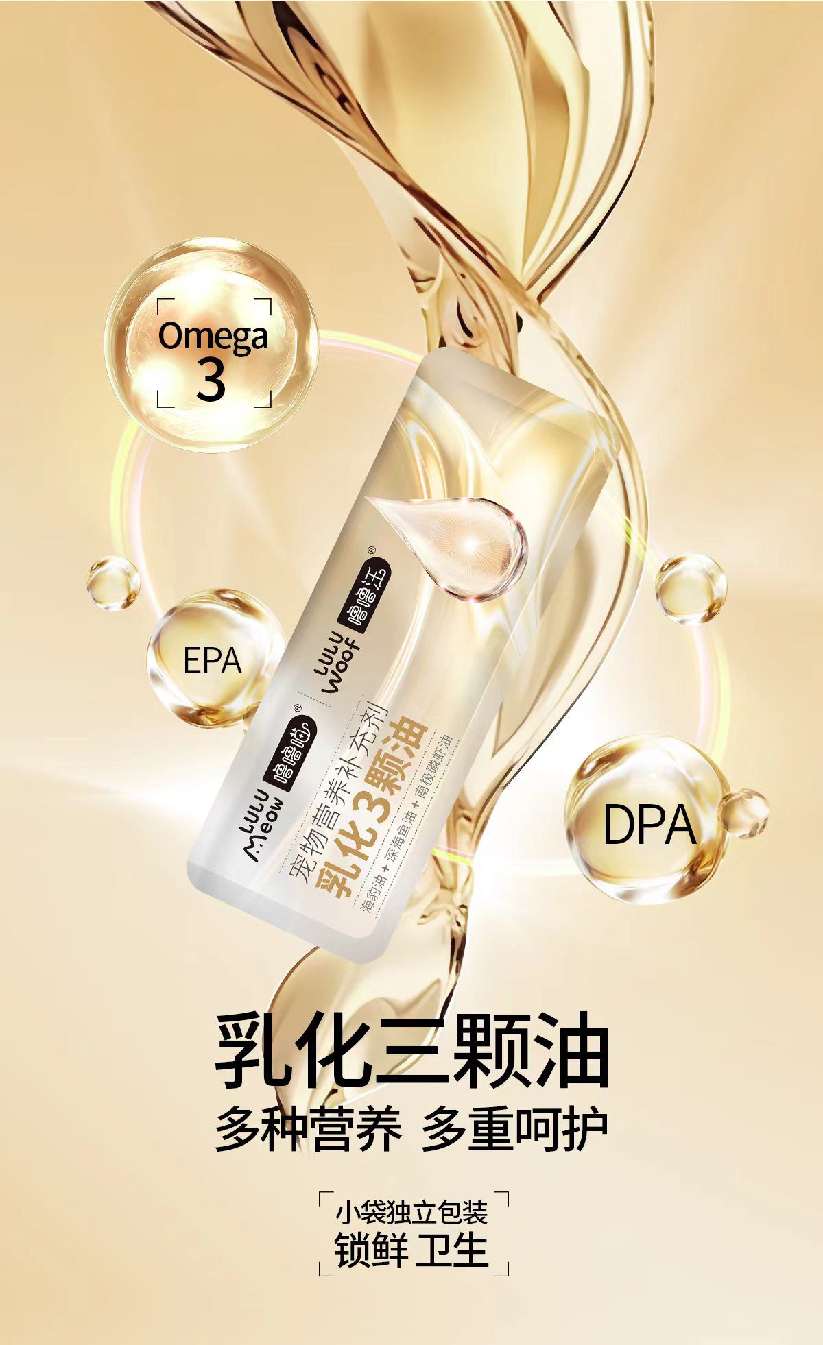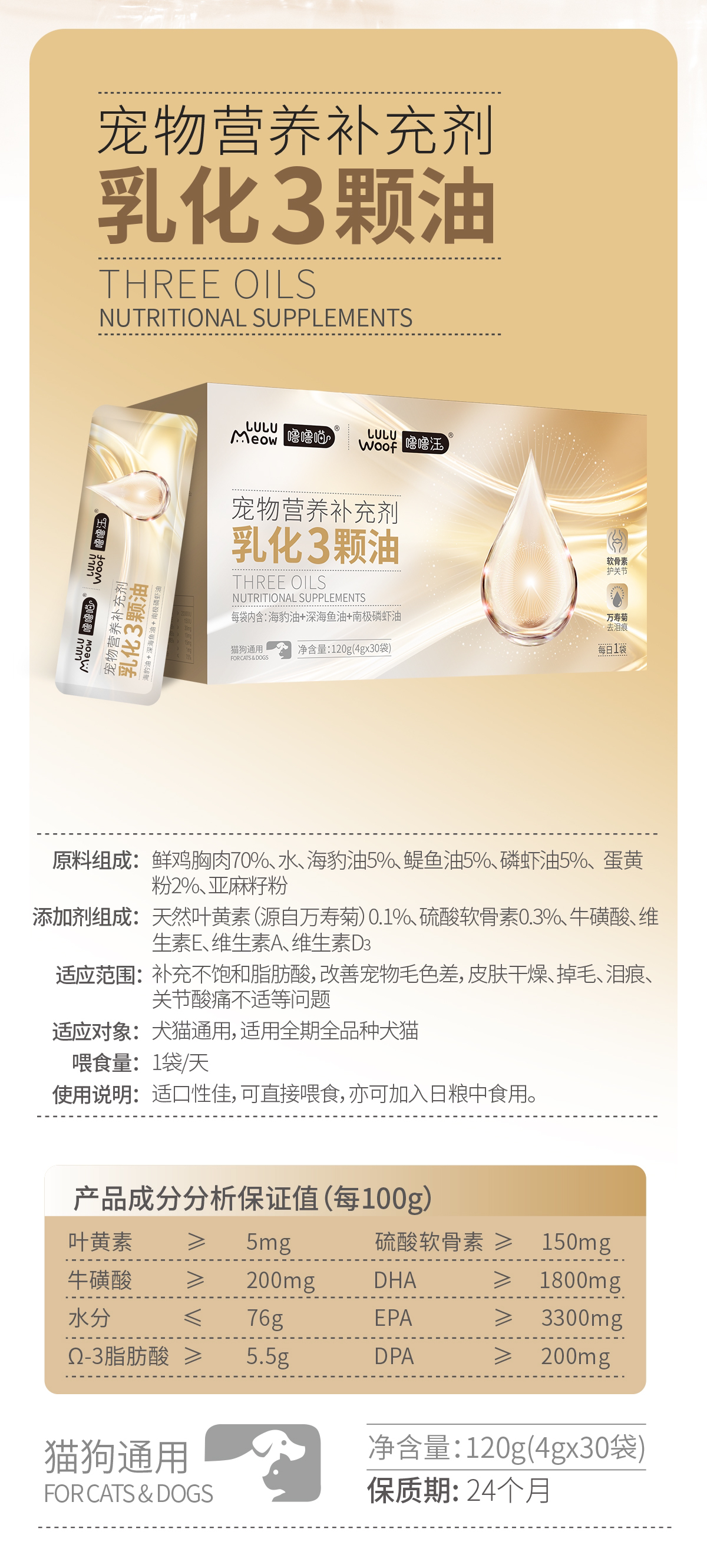 噜噜喵 乳化三颗油 宠物营养补充剂 深海鱼油+南极磷虾油+海豹油三合一 30袋/盒