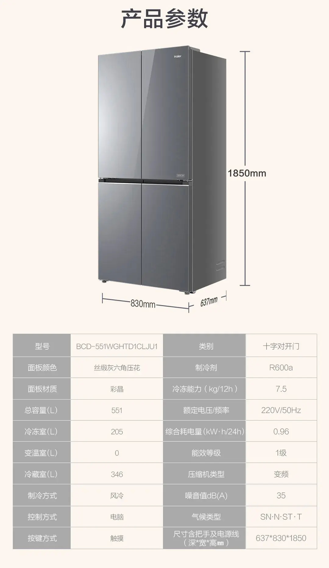 海尔(Haier)冰箱 BCD-551WGHTD1CLJU1