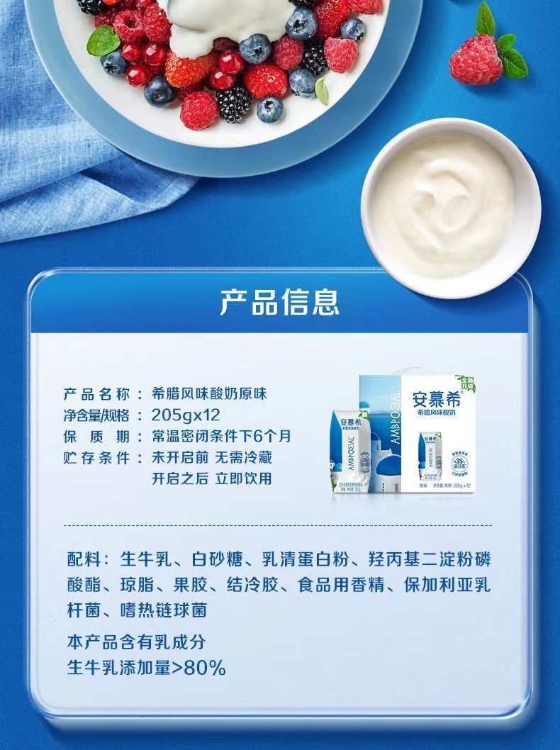 安慕希伊利希腊风味原味205g*10盒整箱酸奶生牛乳营养早餐