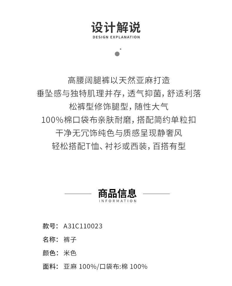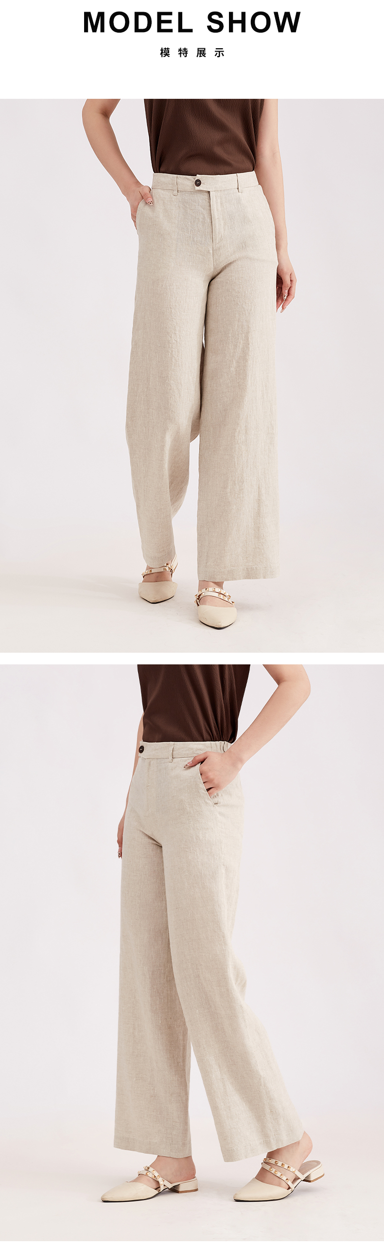 【商场同款】阿菁娜春季新款静奢风高腰阔腿裤天然亚麻透气抑菌廓形舒展高级松弛A31C110023