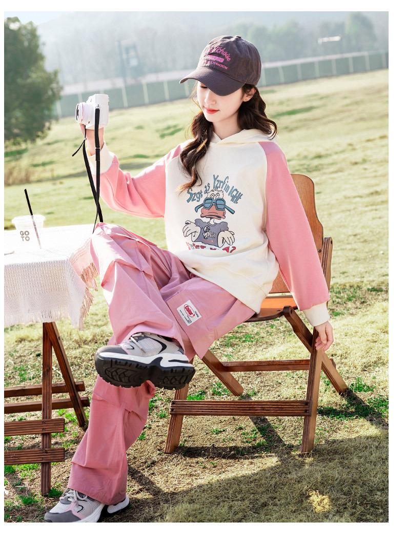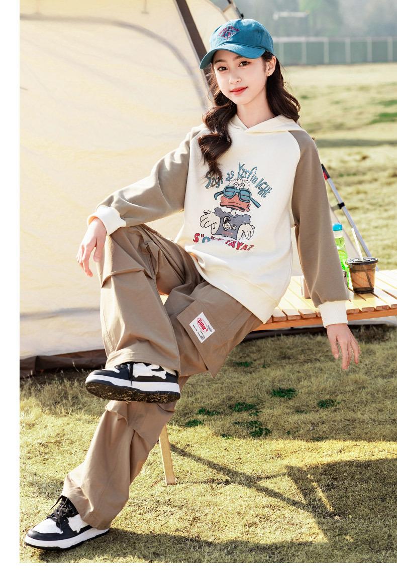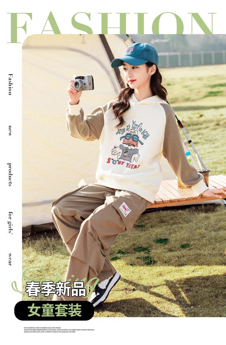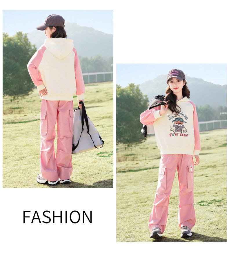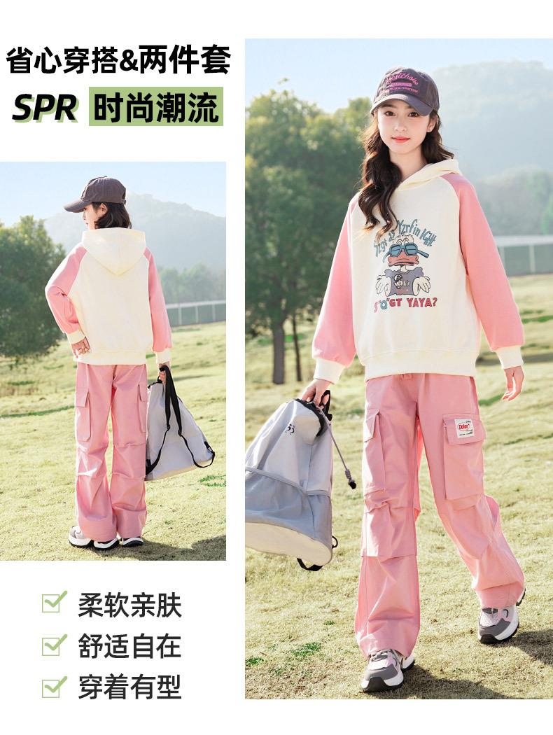 女童连帽运动套装2024新款休闲两件套中大童春秋卫衣工装裤两件套