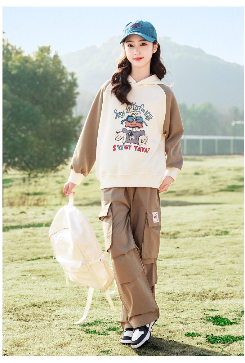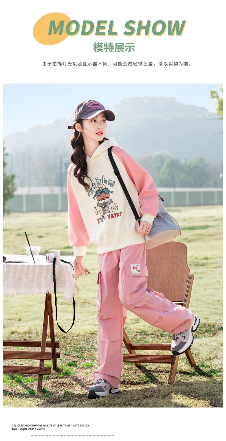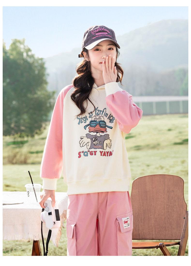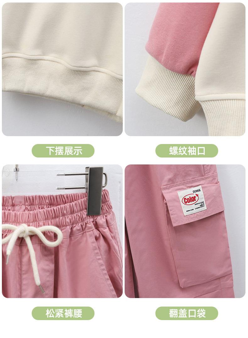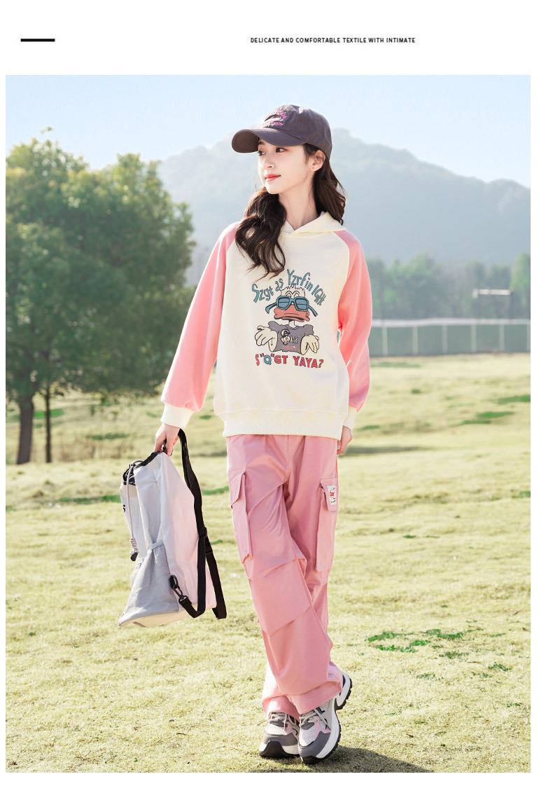 女童连帽运动套装2024新款休闲两件套中大童春秋卫衣工装裤两件套