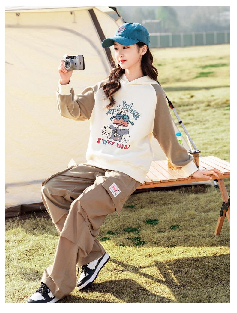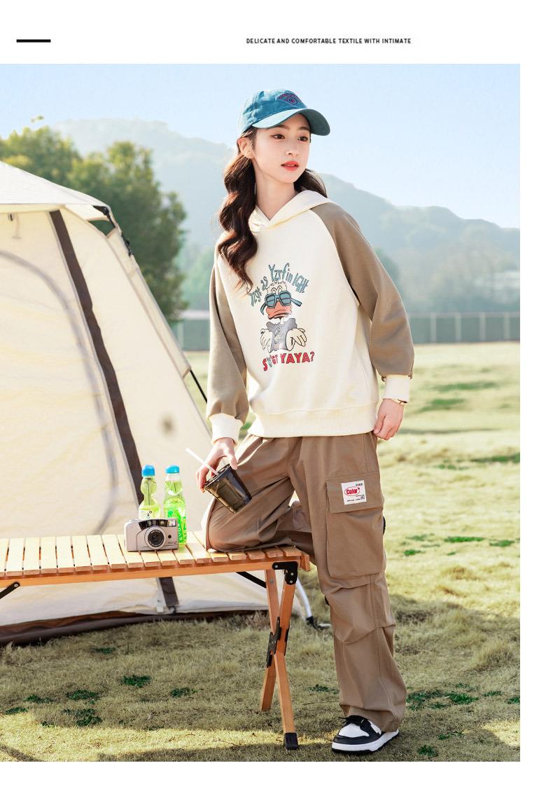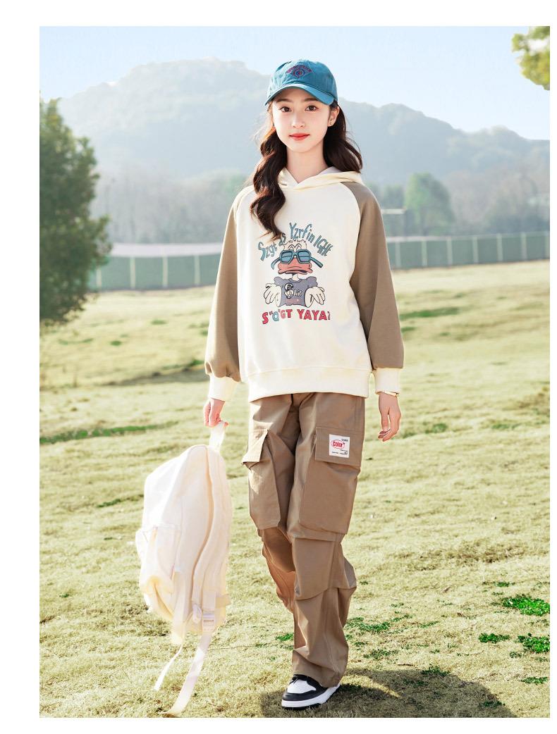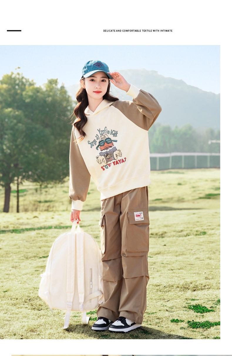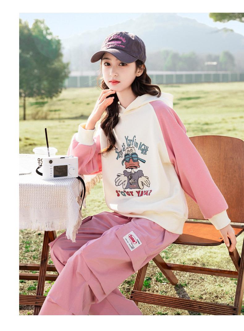 女童连帽运动套装2024新款休闲两件套中大童春秋卫衣工装裤两件套