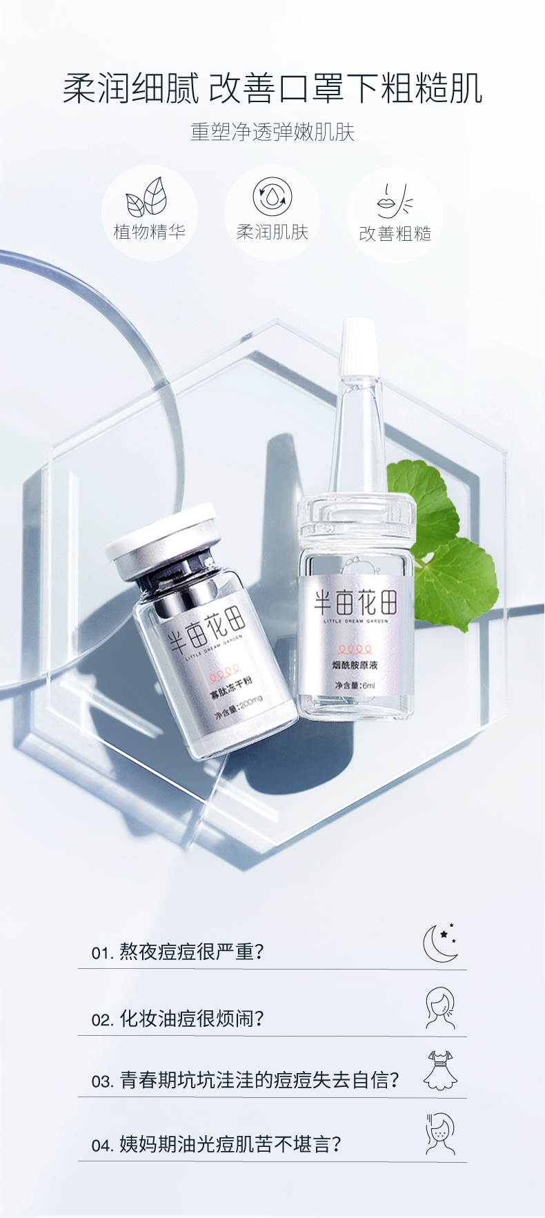 【第二件0元】半亩花田冻干粉精华寡肽原液烟酰胺收缩毛孔细腻男女补水保湿滋润