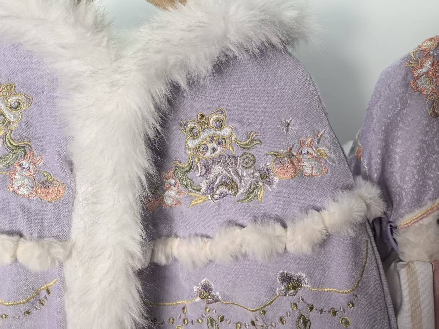 苏城纪【安澜】2025冬季新款中国风新中式拜年服:精致刺绣搭配紫色,清新淡雅的颜色冬日氛围感十足,仿佛冬日里的暖阳,温柔的包裹着孩子们的童真梦想