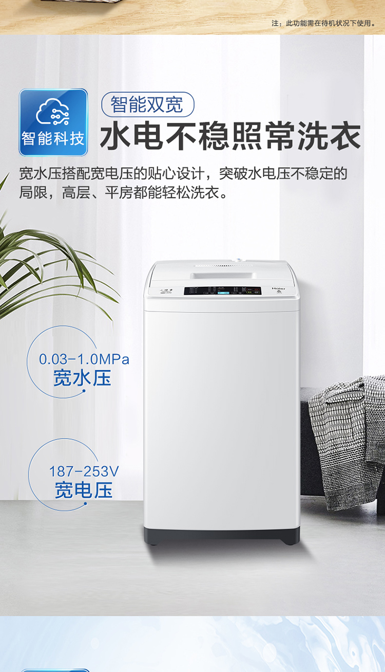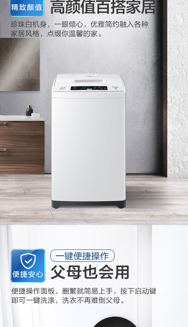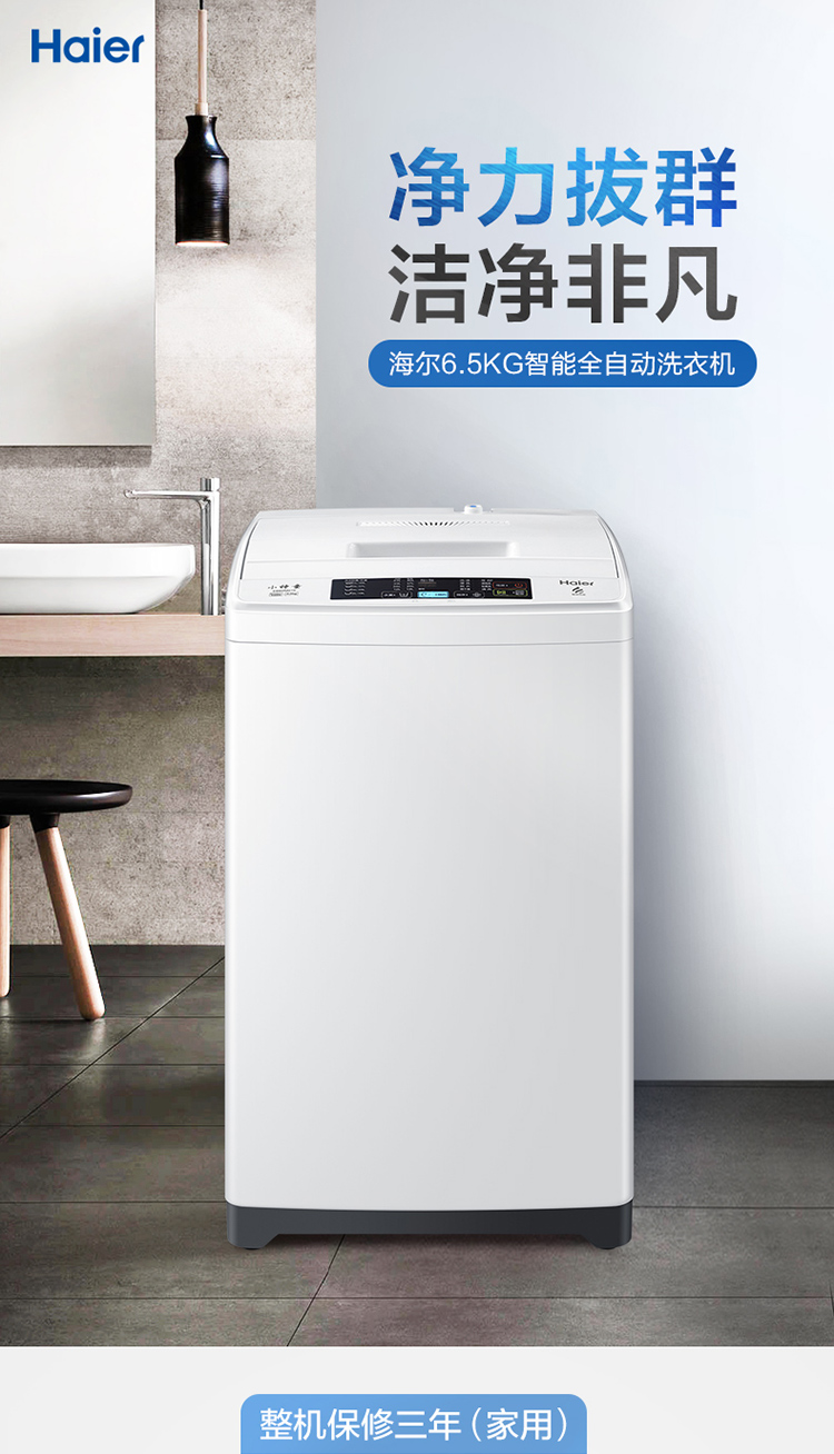 海尔(Haier)租房神器 波轮洗衣机全自动 6.5公斤 四重净洗 智能称重 专属洗涤程序 EB65M019
