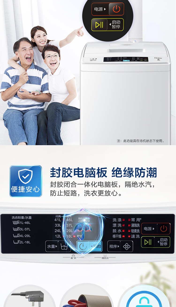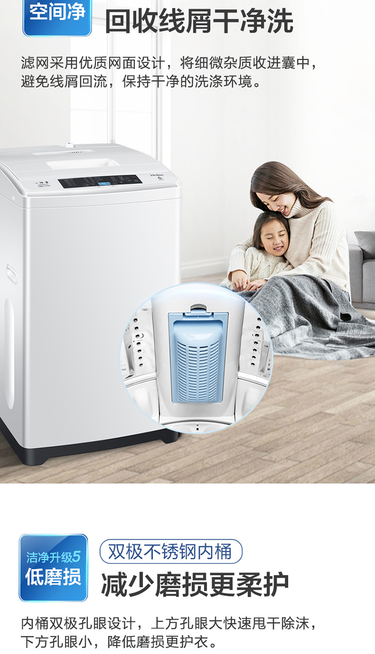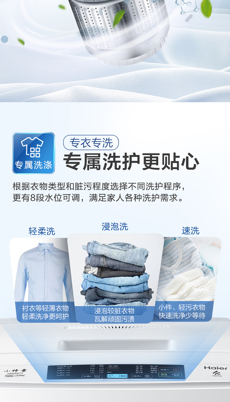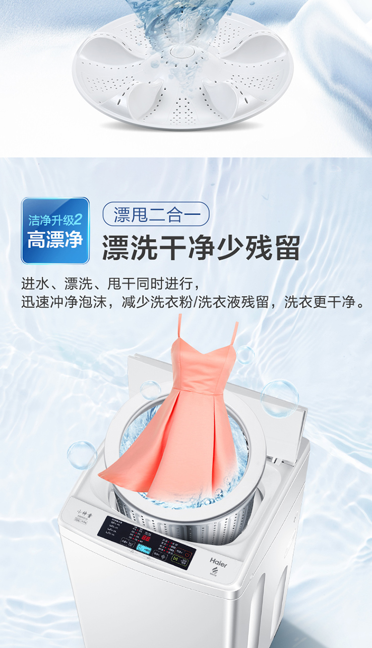 海尔(Haier)租房神器 波轮洗衣机全自动 6.5公斤 四重净洗 智能称重 专属洗涤程序 EB65M019