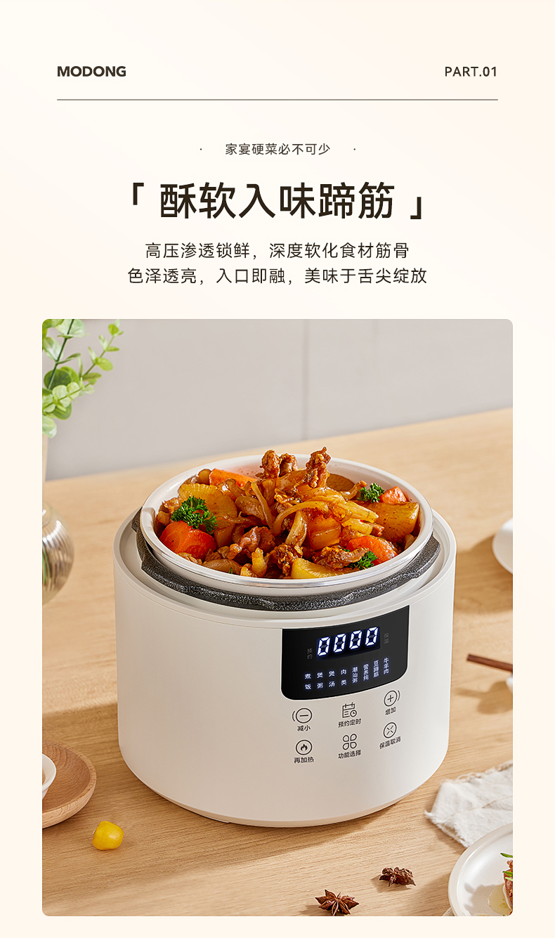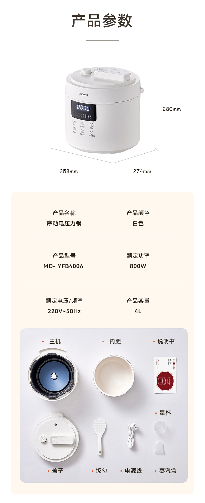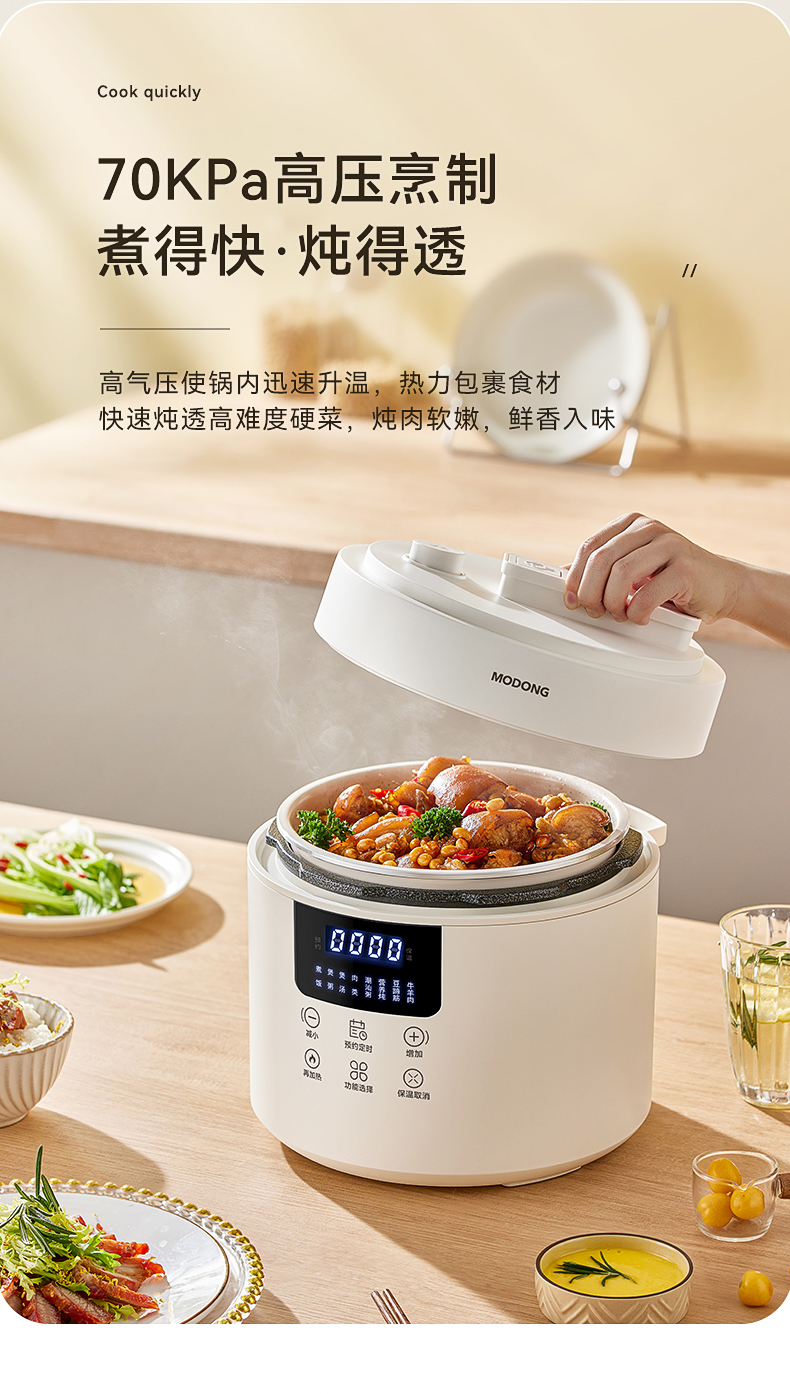【高压速烹】摩动电压力锅MD-YFB4006 智能调压 8大预设菜单 24小时预约 4L大容量