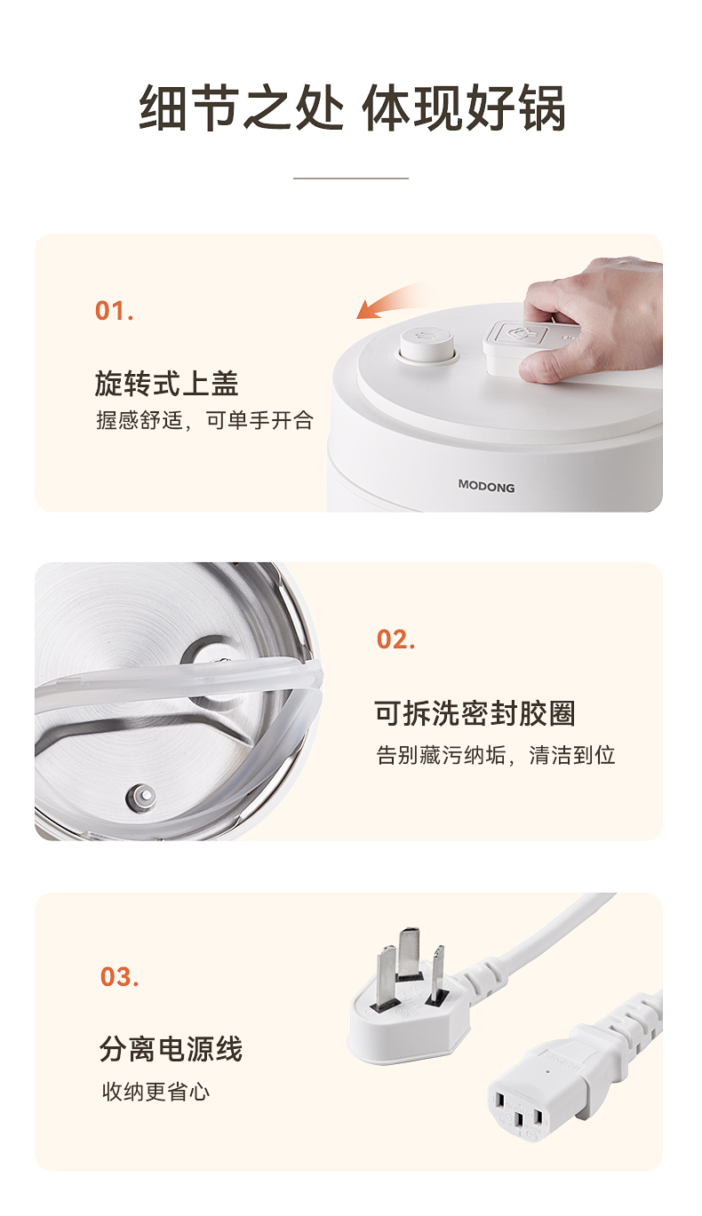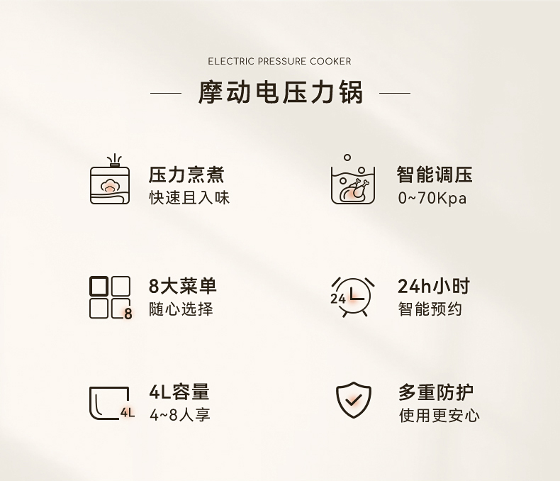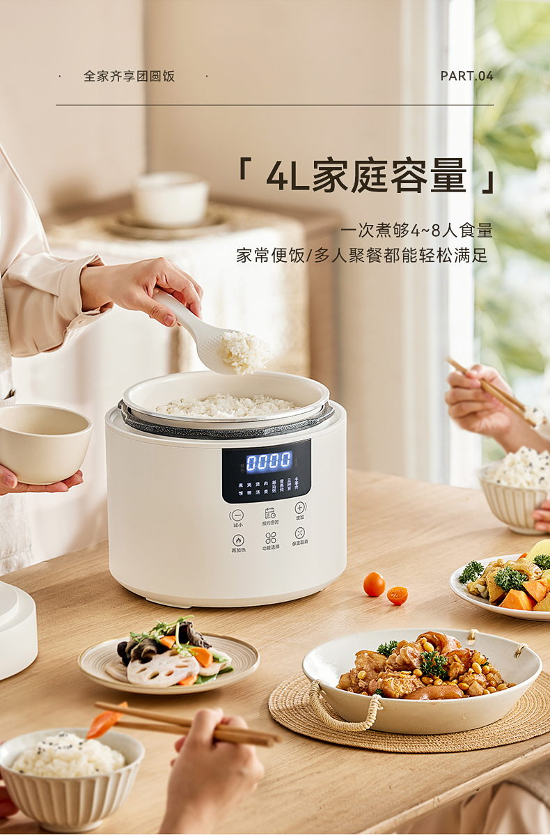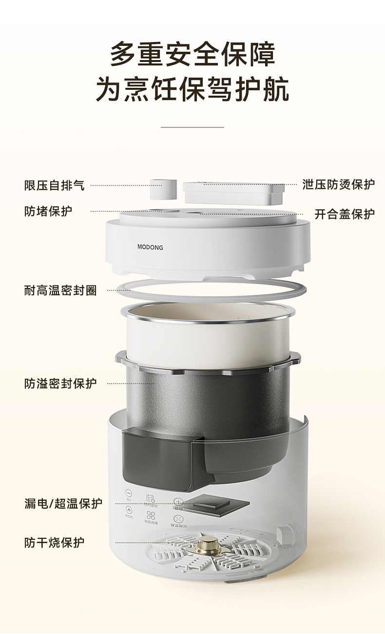 【高压速烹】摩动电压力锅MD-YFB4006 智能调压 8大预设菜单 24小时预约 4L大容量