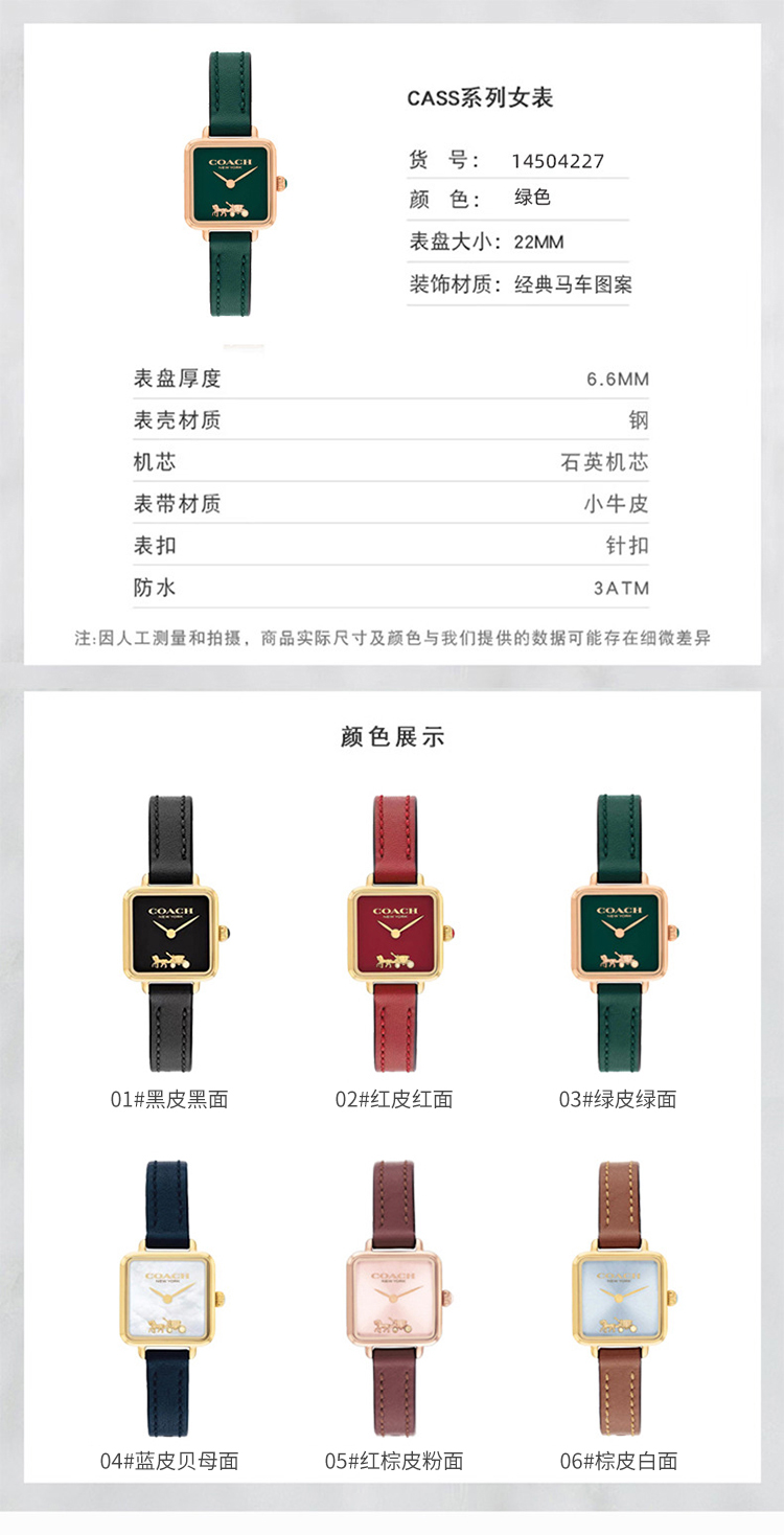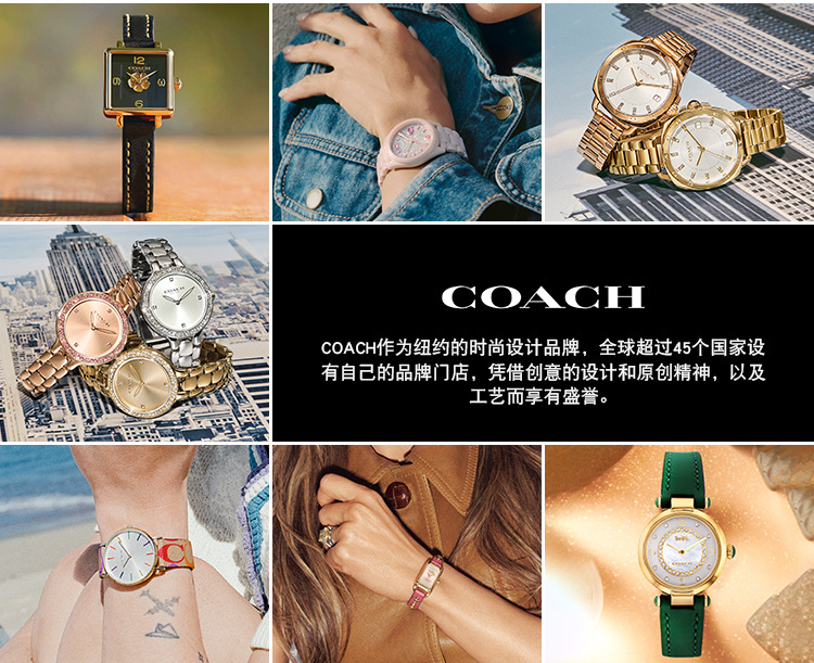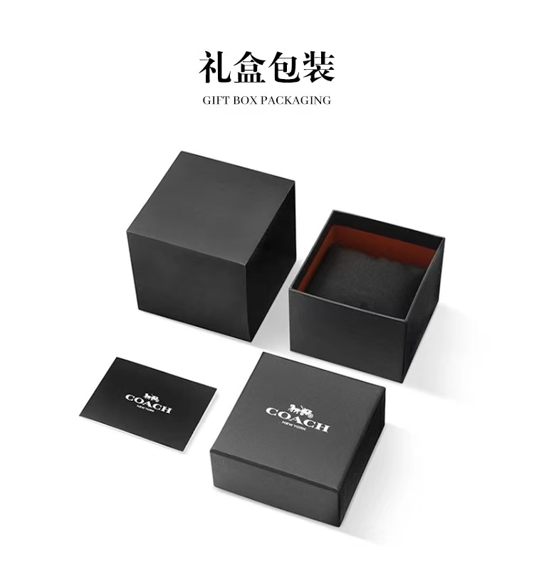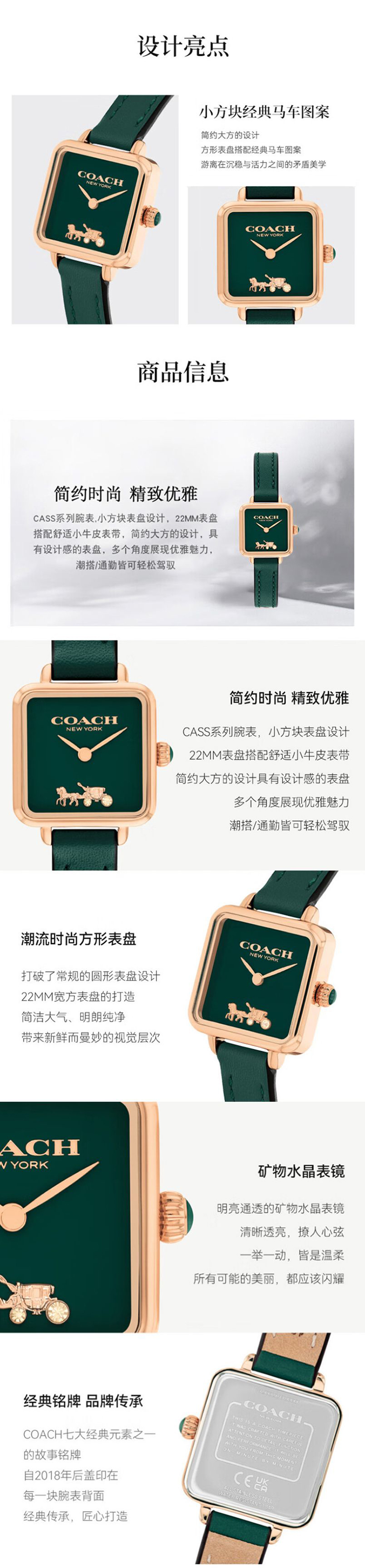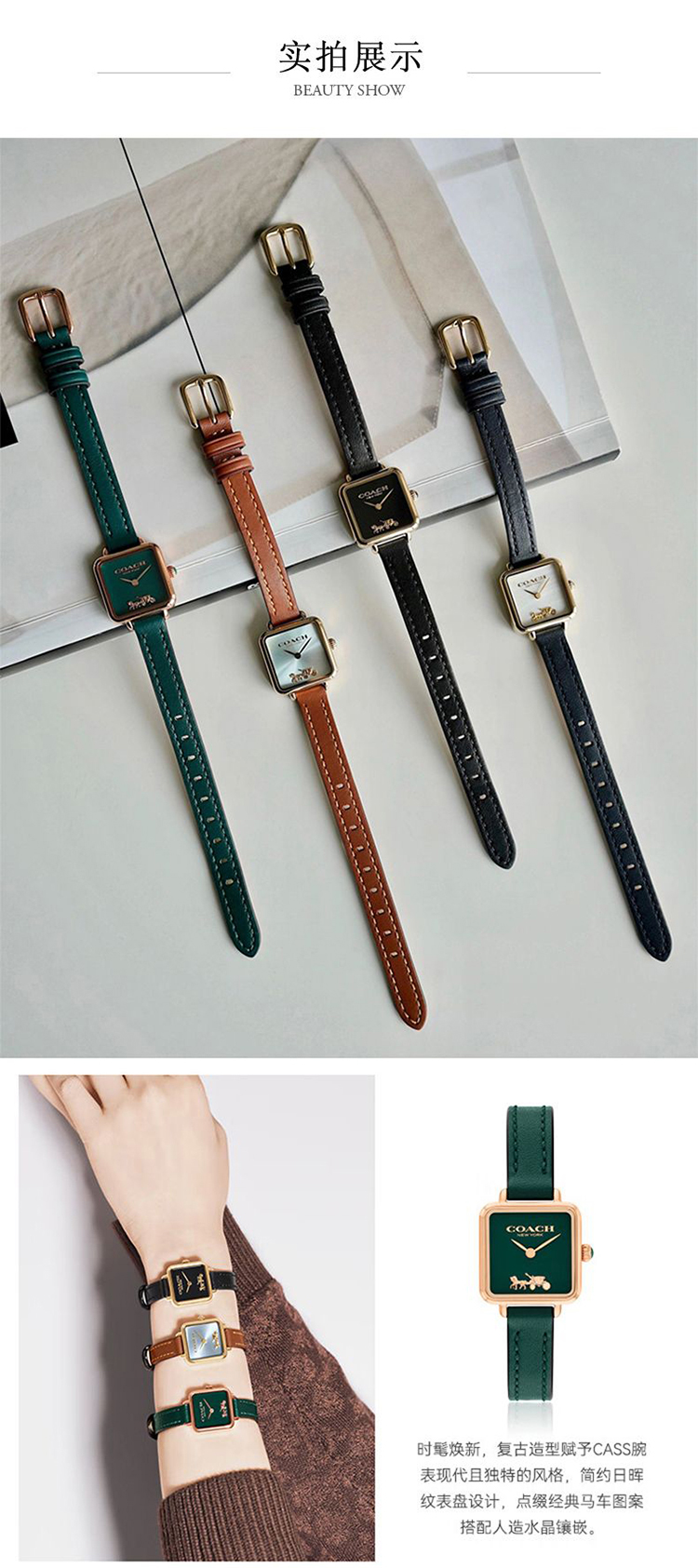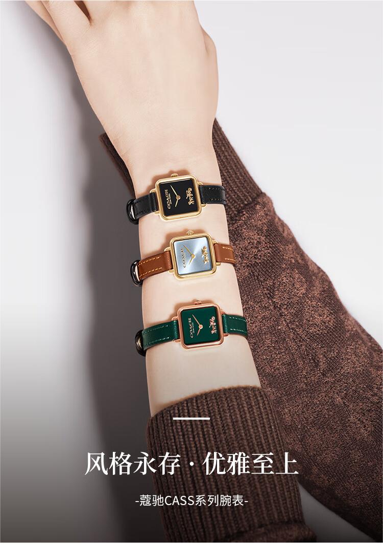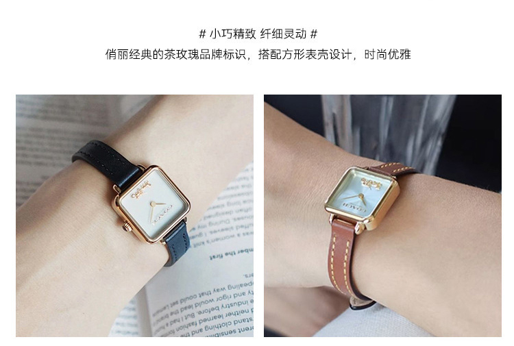 【礼盒装】COACH/蔻驰 CASS系列经典茶玫瑰石英小方糖手表 轻奢腕表 送女友生日礼物 节日送礼