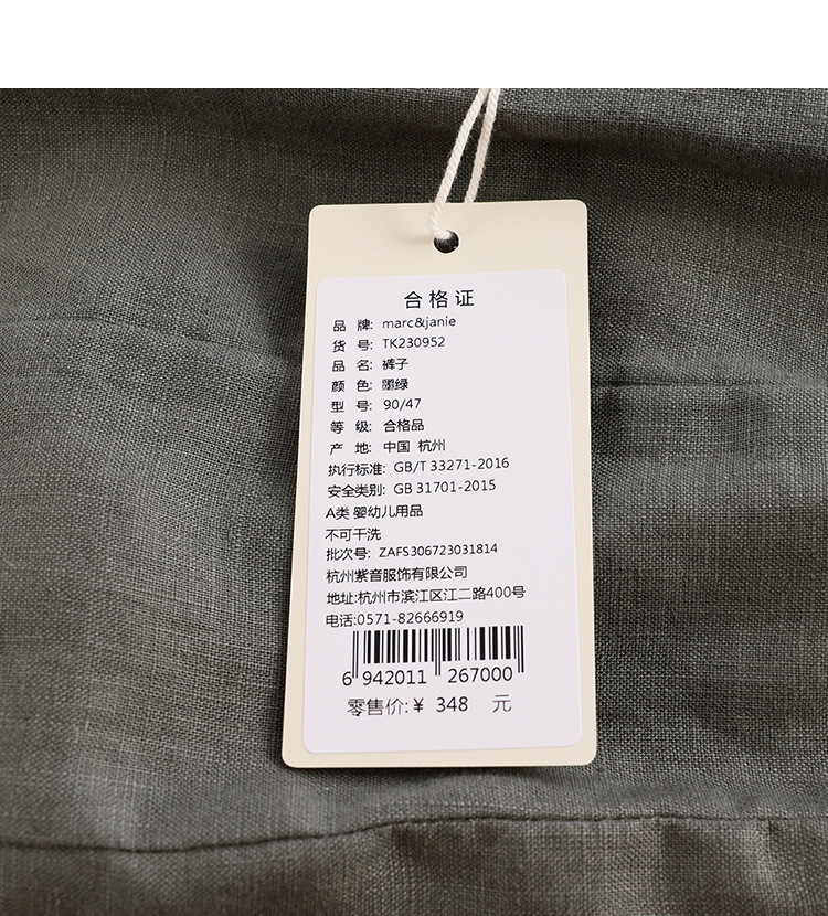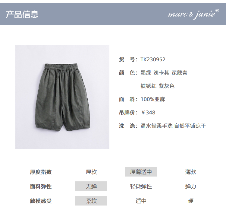 马克珍妮夏装新款 男女童100%天然亚麻透气灯笼裤 儿童裤子230952