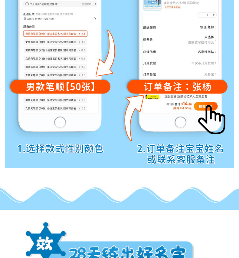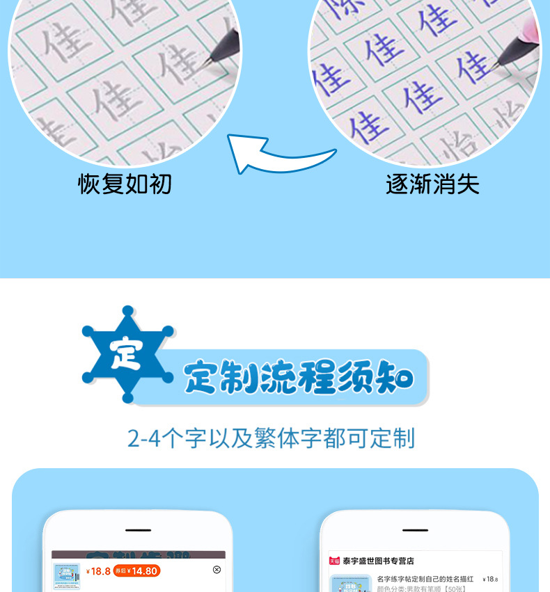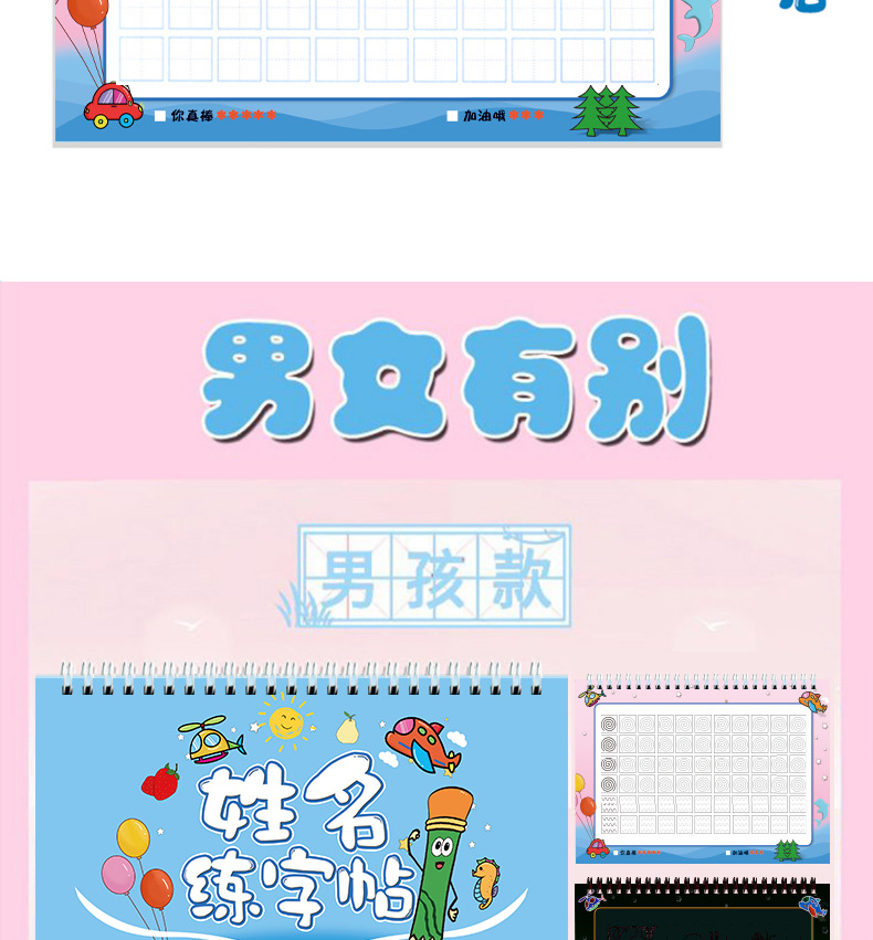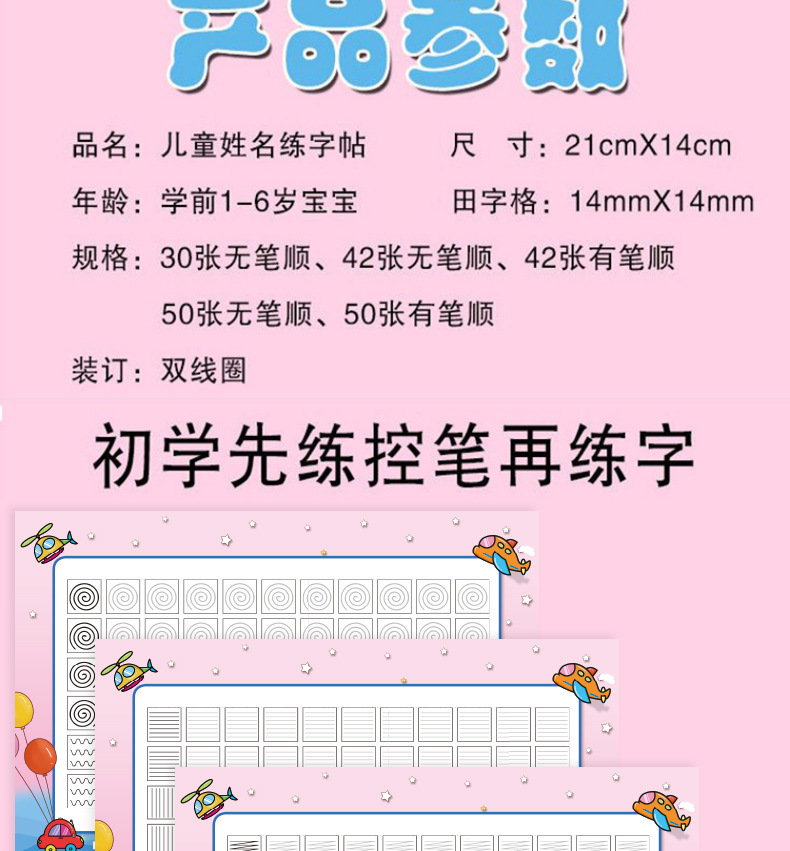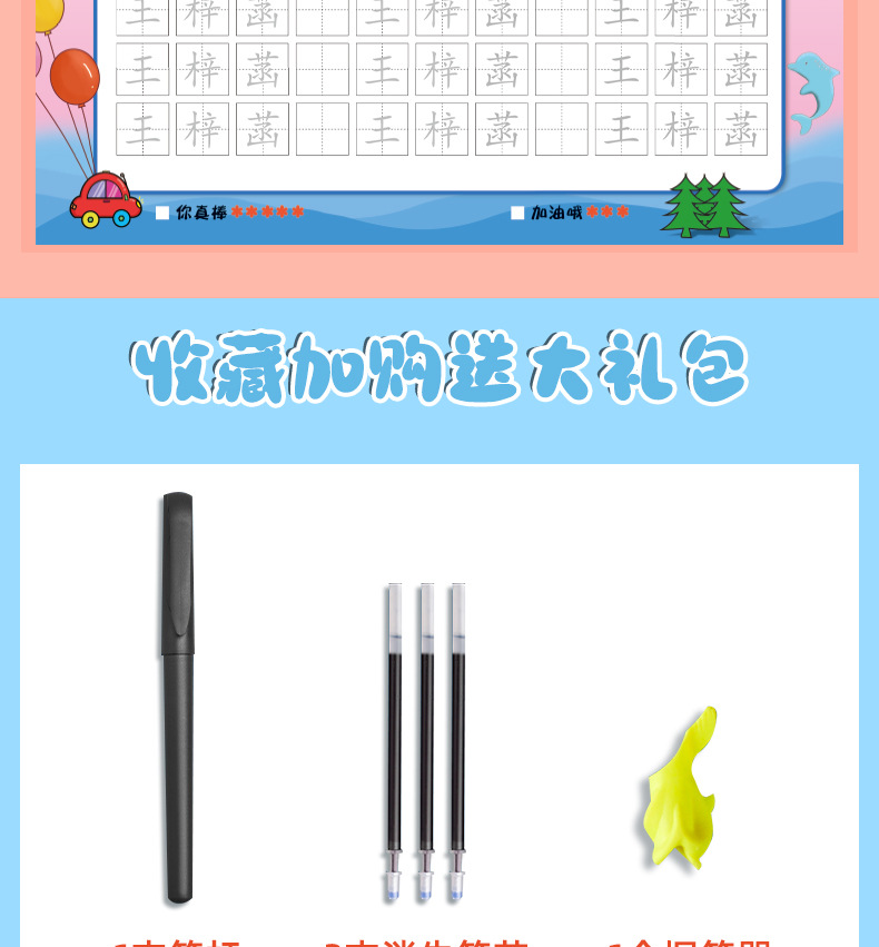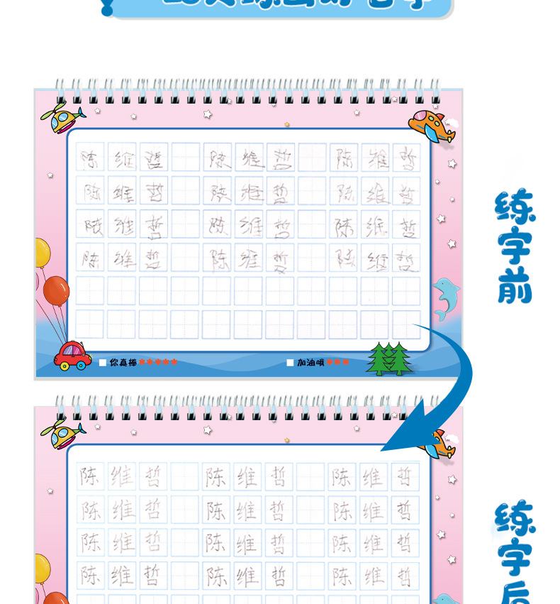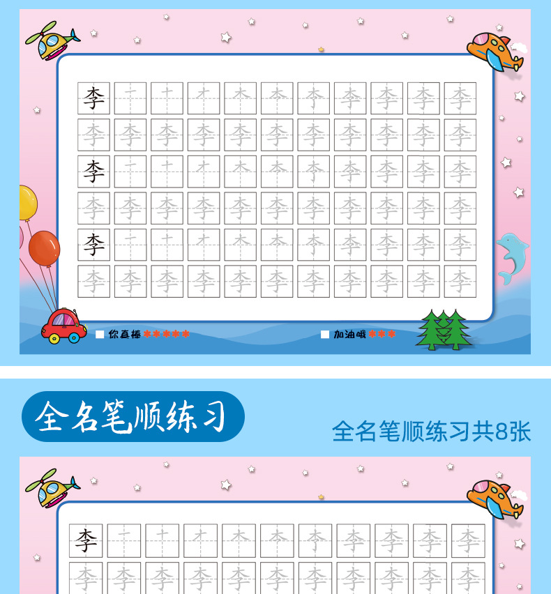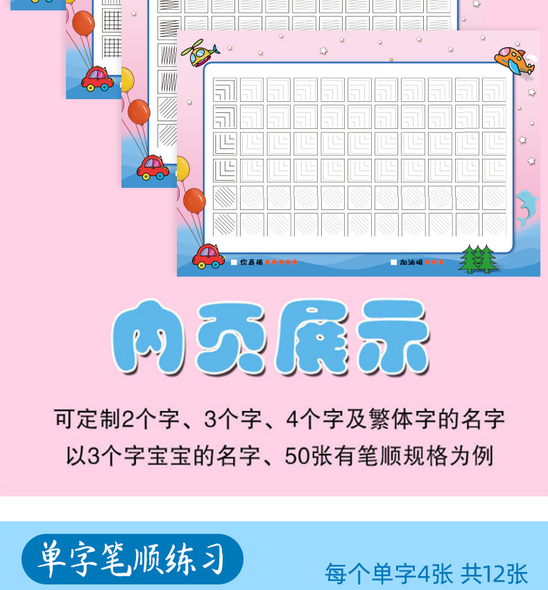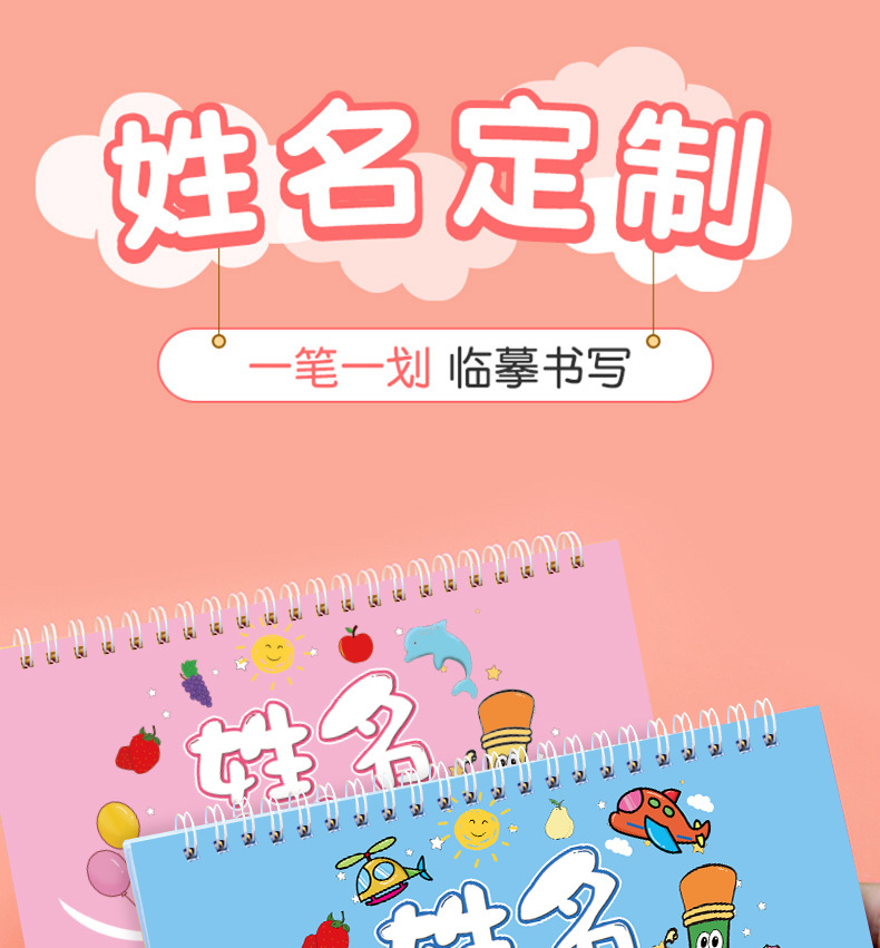 开学季福利!【赠送练字笔 】50张名字练字帖幼儿园姓名练字帖儿童名字姓名笔画笔顺描红本练习本