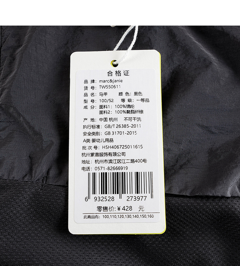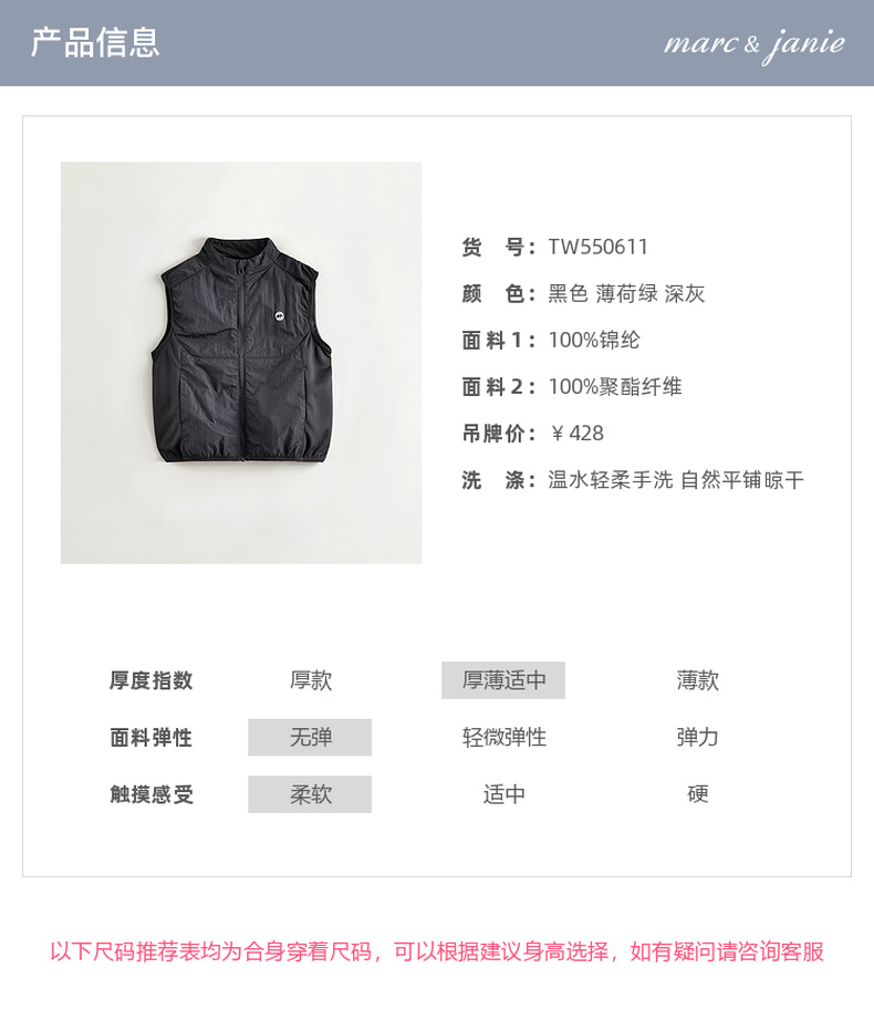 马克珍妮男女童轻盈透气运动马甲 儿童夹克2025年春夏新款550611