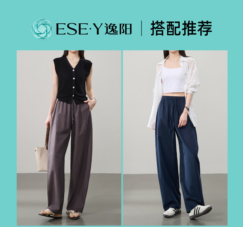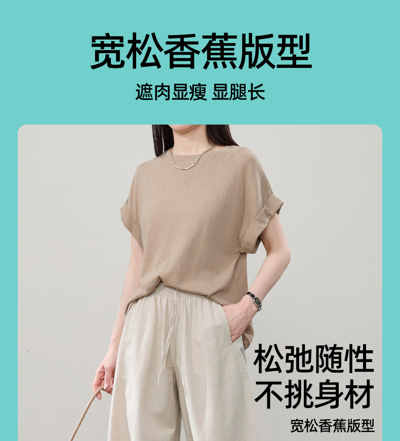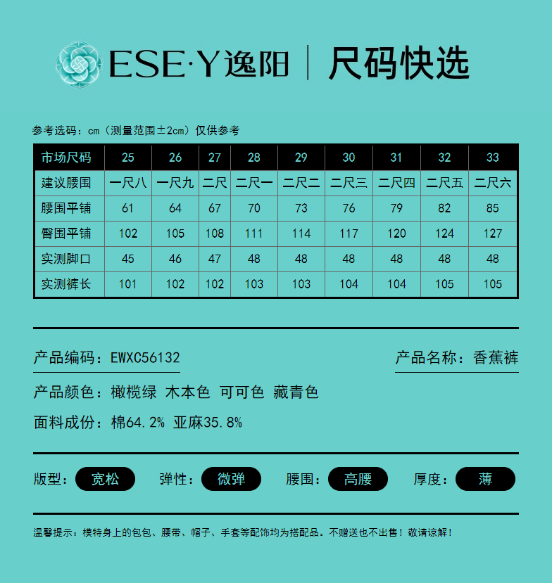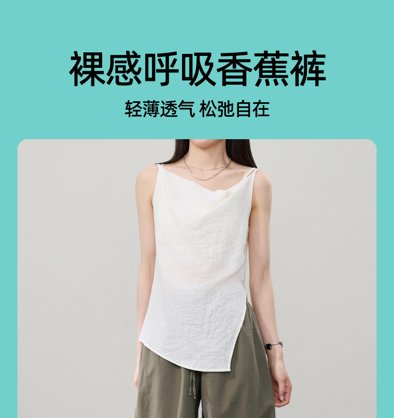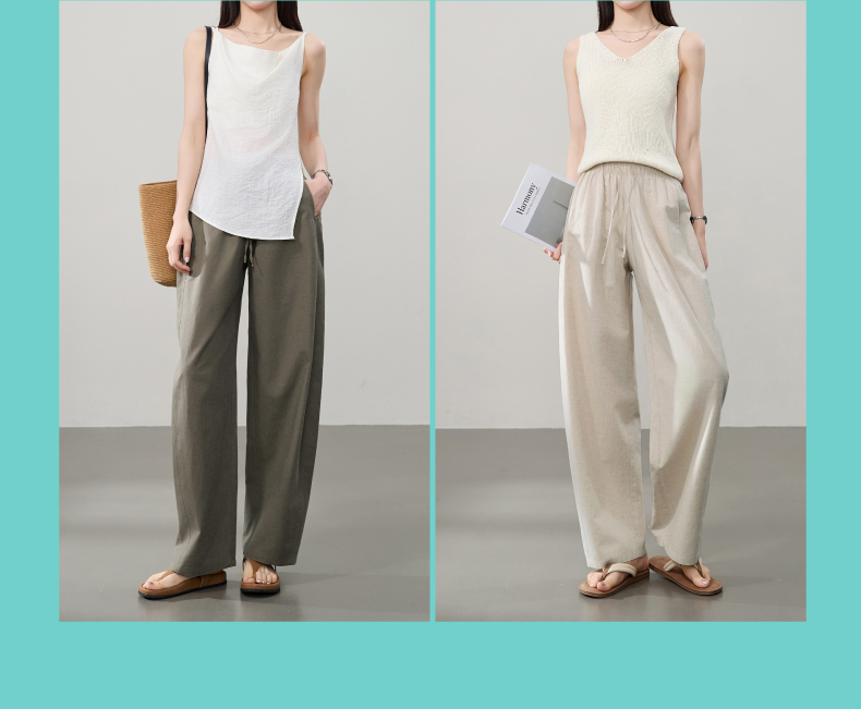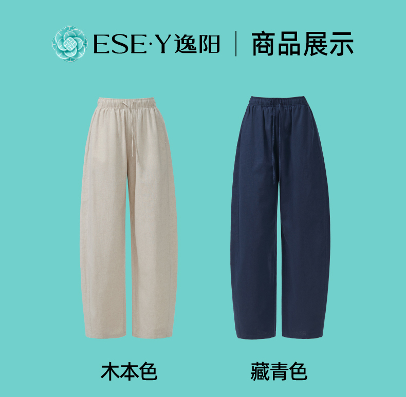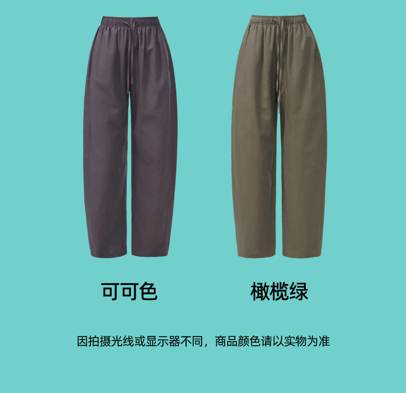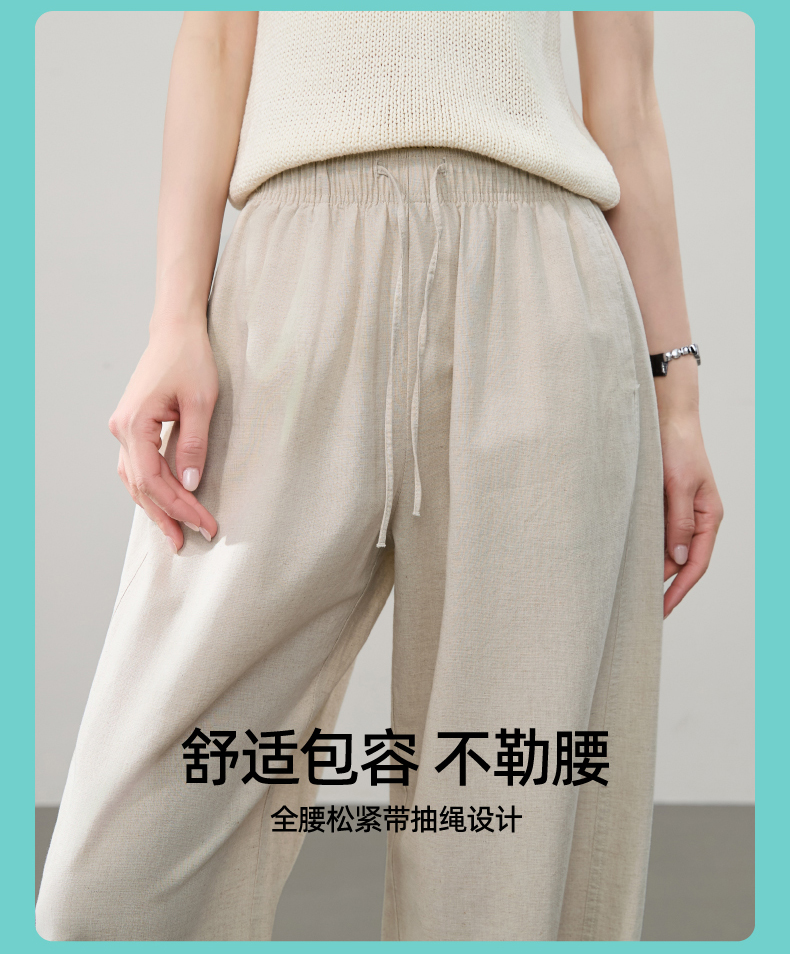【降价-棉麻香蕉裤】逸阳裸感高腰抽绳透气宽松休闲裤子6132