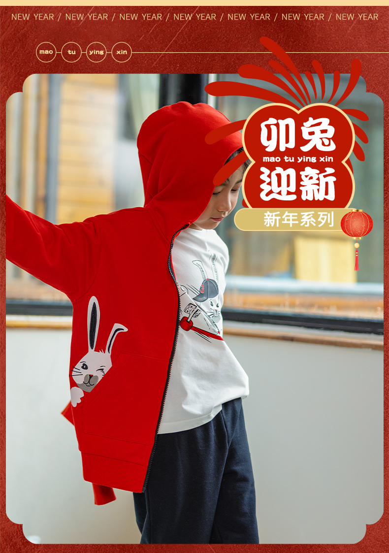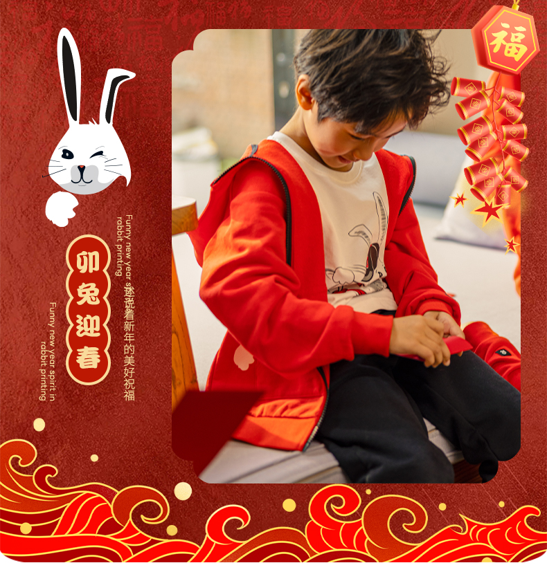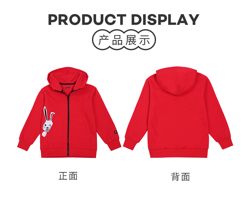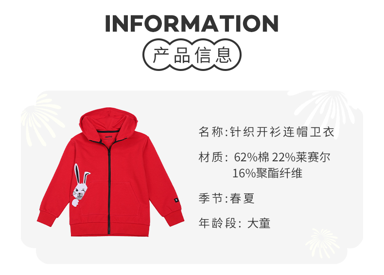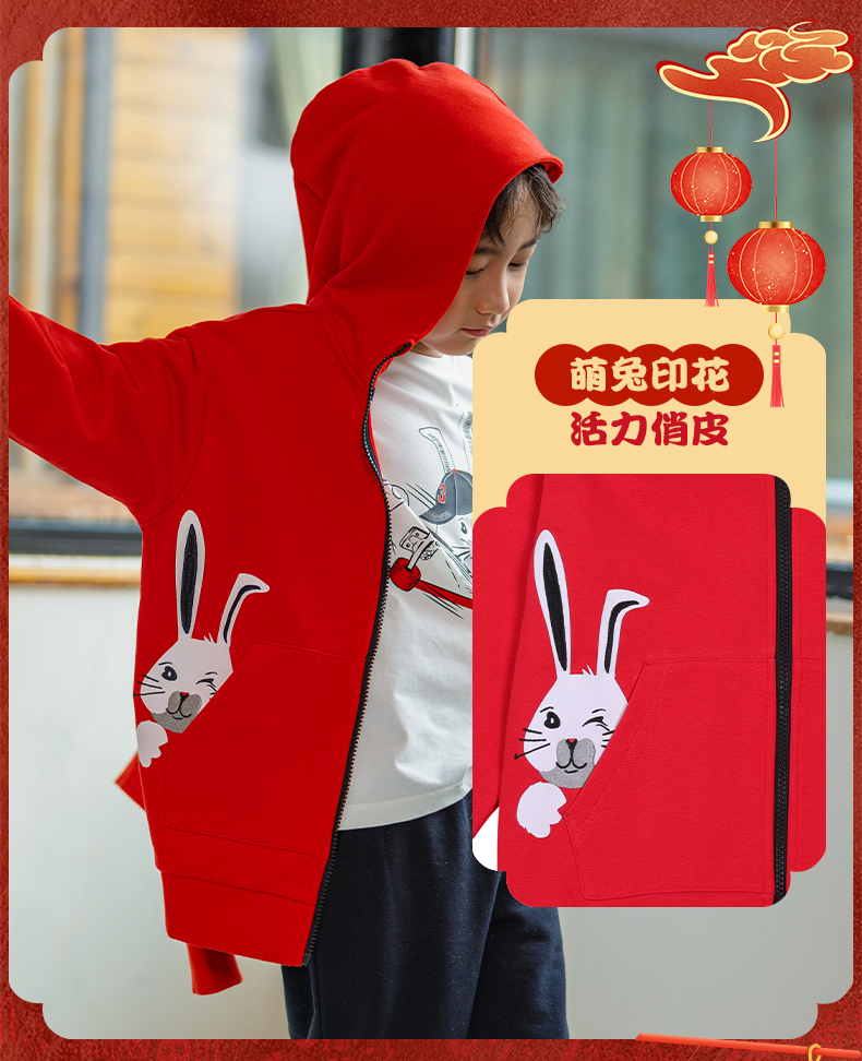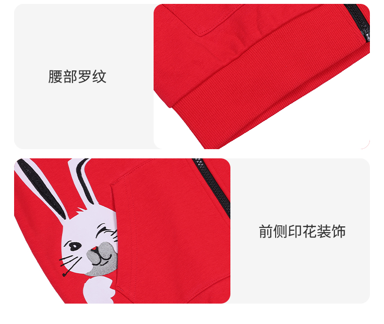 reima男女儿童大童卫衣新年款春夏兔子印花休闲连帽开衫外套